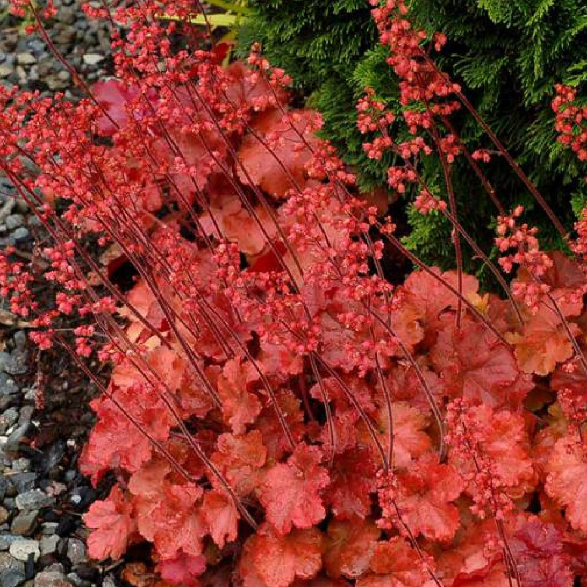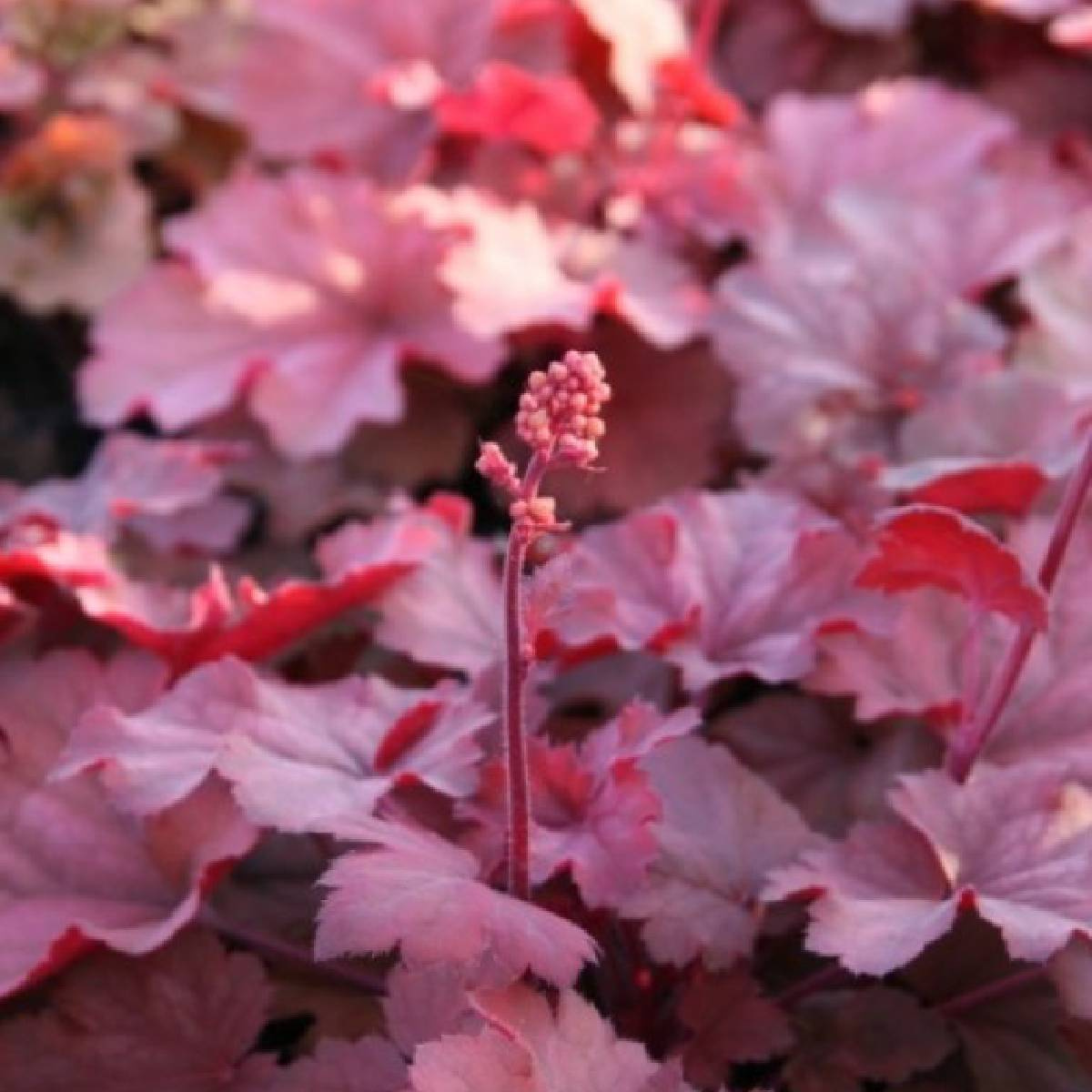 Piękne, regularne liście przyjmują odcienie będące połączeniem rdzawej wiśni z karmelowym brązem Coca Coli. Odmiana o bardzo sztywnych i gęstych liściach oraz zwartym, regularnym wzroście. Kępa liści osiąga zaledwie 15-20 cm przy około 30 cm średnicy, gdy zakwita (IV-V) na czerwono wysokość wzrasta do około 40 cm, gdyż kwiatostany są bardzo pokaźne. Cenną cechą tej żurawki jest tolerancja na okresową suszę oraz bezpośrednie nasłonecznienie.