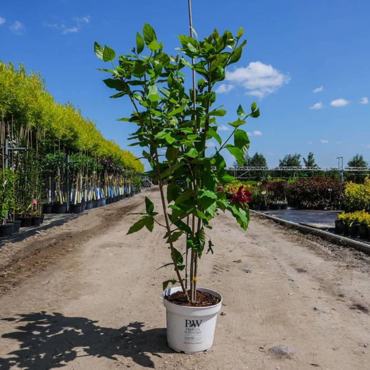 To wyjątkowa i rzadko spotykana odmiana kielichowca, która charakteryzuje się atrakcyjnymi czerwonymi kwiatami oraz pięknym liściem. Ta nowa odmiana jest efektem krzyżowania kielichowca chińskiego i kielichowca wschodniego. Roślina ta osiąga wysokość od 1,5 do 2 metrów, przy podobnej szerokości. Kiedy naruszymy jej korę i liście, uwalniają one delikatny zapach kamfory. Liście są duże, mają 14 centymetrów długości, są ciemnozielone i lśniące, opadają na zimę.