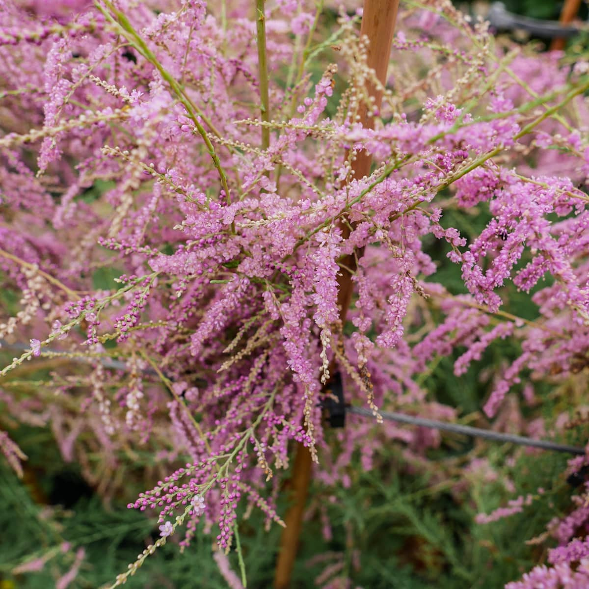 Tamaryszek to dekoracyjny krzew, który osiąga około 3 metry wysokości i 2 metry szerokości. Jego piękne, różowe kwiaty pojawiają się latem, między czerwcem a sierpniem. Te urocze kwiaty rosną na końcach tegorocznych gałązek, tworząc duże, zwisające kłosy o długości od 3 do 5 centymetrów. Kwiaty są wyjątkowo małe, różowe i opadają po przekwitnieniu. Liście tego krzewu są wąskie, malutkie, przypominają łuski i zachowują zielony kolor, chociaż opadają na zimę.