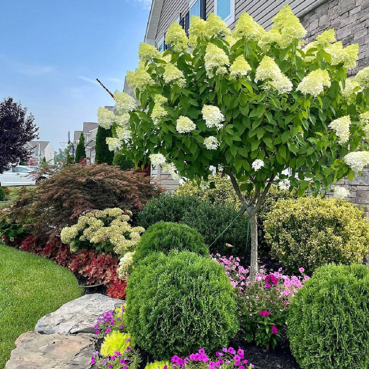 Hortensja Phantom szczepiona na pniu łączy siłę klasycznej hortensji bukietowej z elegancją formy drzewka. Jej największymi atutami są niezwykle okazałe, trwałe kwiaty oraz prostota w uprawie. Dzięki szczepieniu na pniu zyskuje smukłą i uporządkowaną sylwetkę, która doskonale sprawdzi się jako soliter w ogrodach reprezentacyjnych, przy wejściach do domów, na rabatach formalnych lub w donicach ustawionych na tarasie. Może być również sadzona w szpalerach lub jako element kompozycji z innymi krzewami ozdobnymi i bylinami. Jej pielęgnacja ogranicza się do wiosennego cięcia oraz podlewania w czasie suszy. Ze względu na siłę wzrostu i imponujące kwiaty, świetnie prezentuje się również w większych ogrodach, gdzie może pełnić rolę tła dla niższych roślin lub centralnego punktu kompozycji.