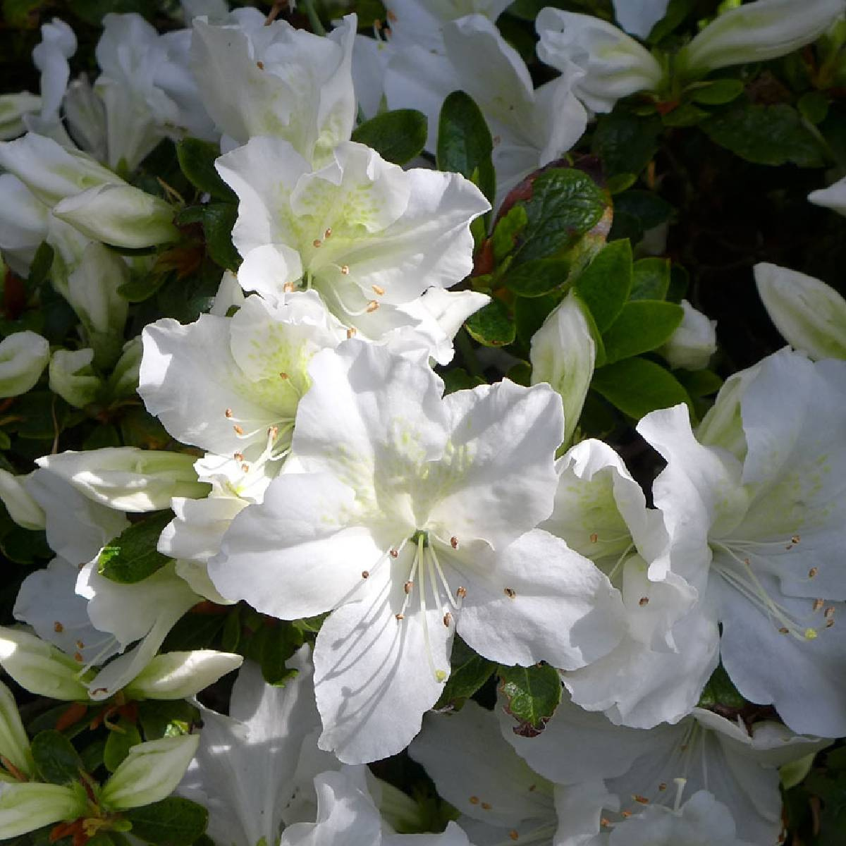 Azalie to wspaniałe zimozielone rośliny. Ogrodnicy uwielbiają je ze względu na wiecznie zielone liście, które dodają struktury wystawom ogrodowym przez cały rok, a także obfitość kwiatów, które zapewniają w okolicach maja. Odmiana Mary Helen dorasta po 10 latach do około 70cm wysokości i nawet dwa razy takiej szerokości. Wyróżnia się wspaniałymi, dużymi kwiatami w białym kolorze, z falistymi brzegami, żółtą gardzielą i ciemnymi pylnikami. Są uroczym wyborem do nasadzeń w zacienionych małych ogrodach.