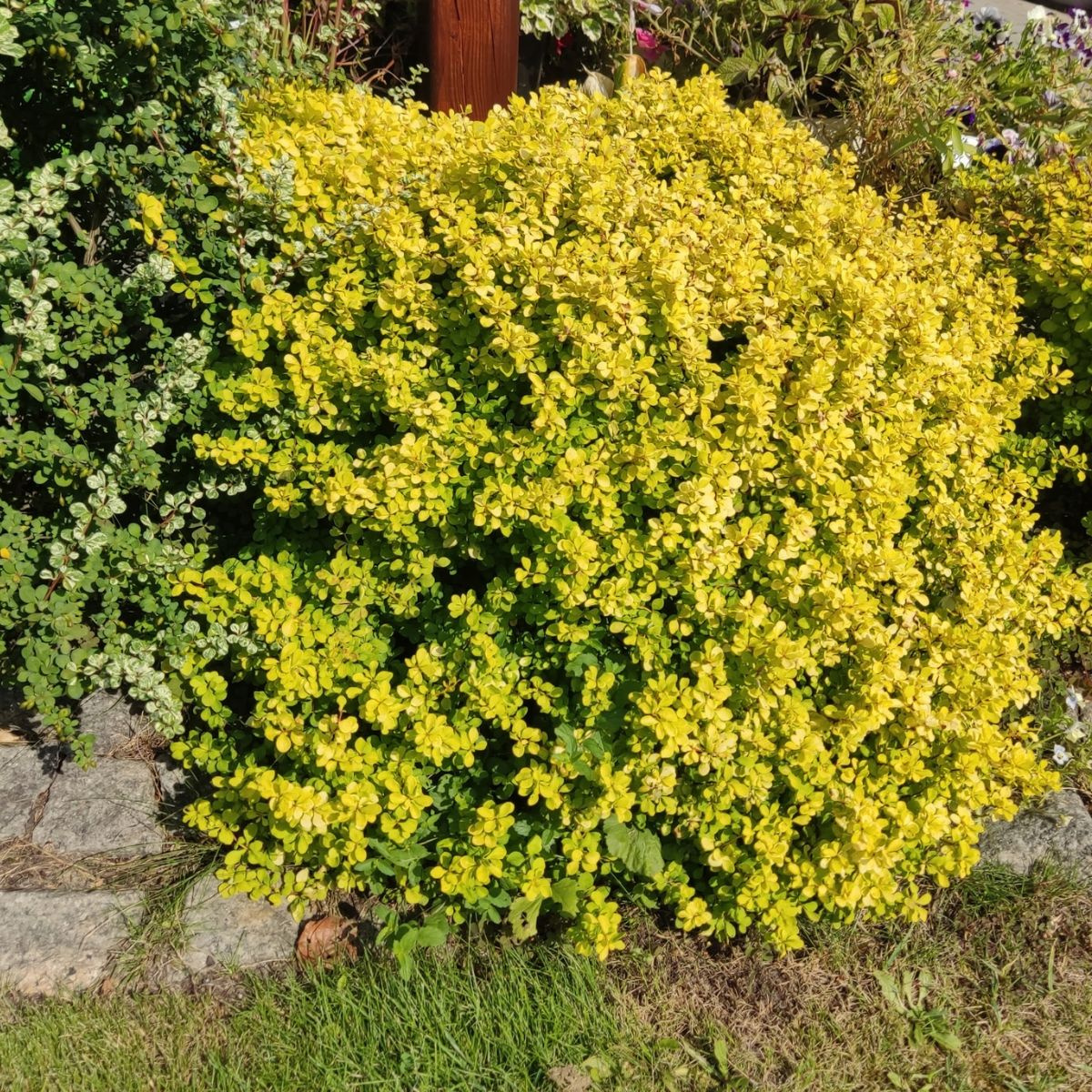 Berberys thunberga Goldalita jest miniaturową odmianą, bardzo zwarta, liście żółte, wzrost bardzo wolny. Osiąga 40cm wysokości i 60cm szerokosci.