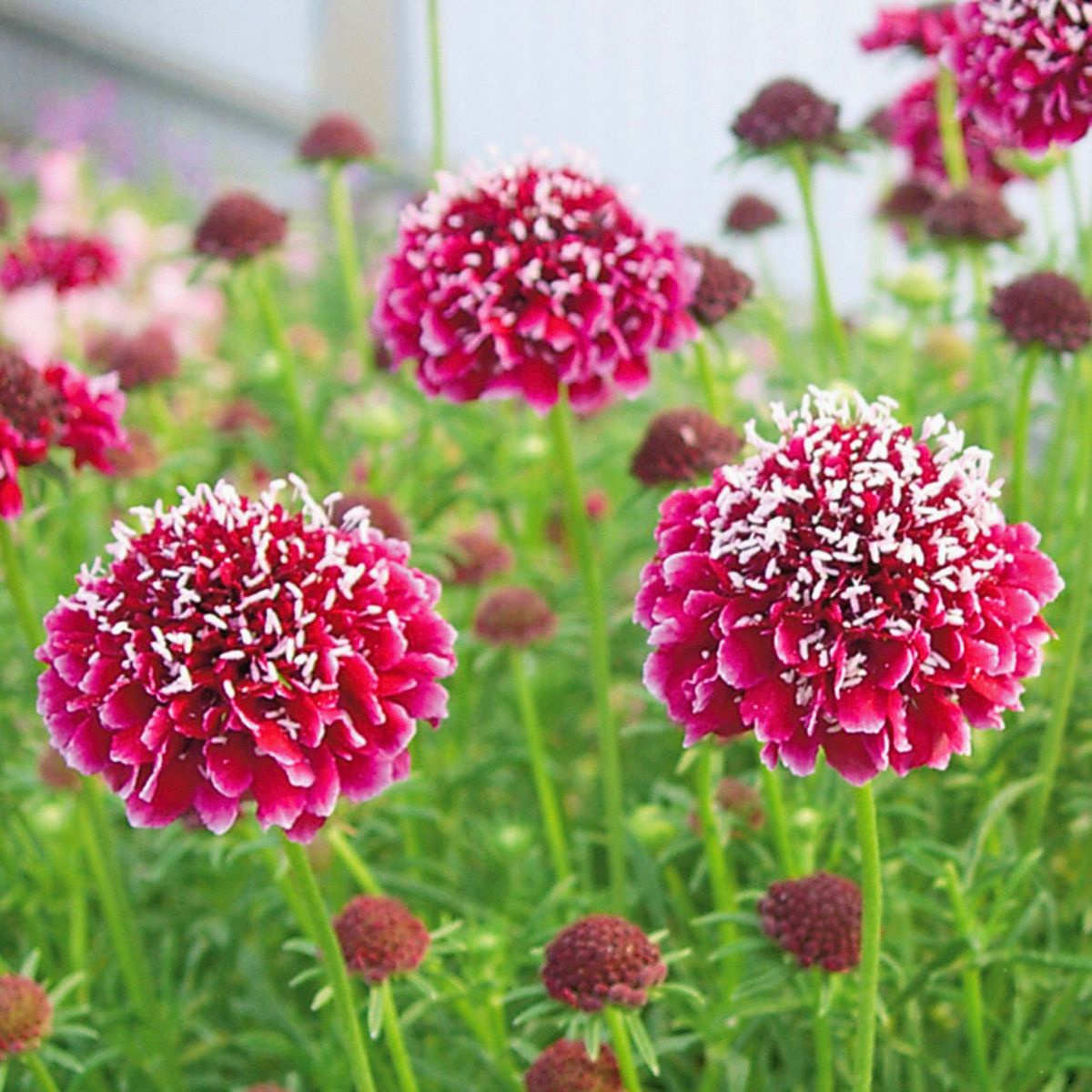 Driakiew gołębia Barocca to niezwykle dekoracyjna bylina, która zachwyca kwiatami o ciekawej budowie i wyrazistej kolorystyce. Osiąga wysokość do 30 cm i tworzy zwarte kępy zielonych, pierzastosiecznych liści. Od maja do października rozwija urocze koszyczki kwiatowe, które przyciągają pszczoły i motyle. Środek kwiatostanu wypełniają drobne kwiaty, otoczone większymi brzeżnymi płatkami, a całość przypomina poduszeczkę z powbijanymi szpilkami. Ta roślina to doskonały wybór na rabaty, obwódki, do ogrodów skalnych, a także jako ozdoba pojemników i donic. Sprawdź sadzonki bylin, aby wzbogacić swój ogród o tę wyjątkową odmianę.