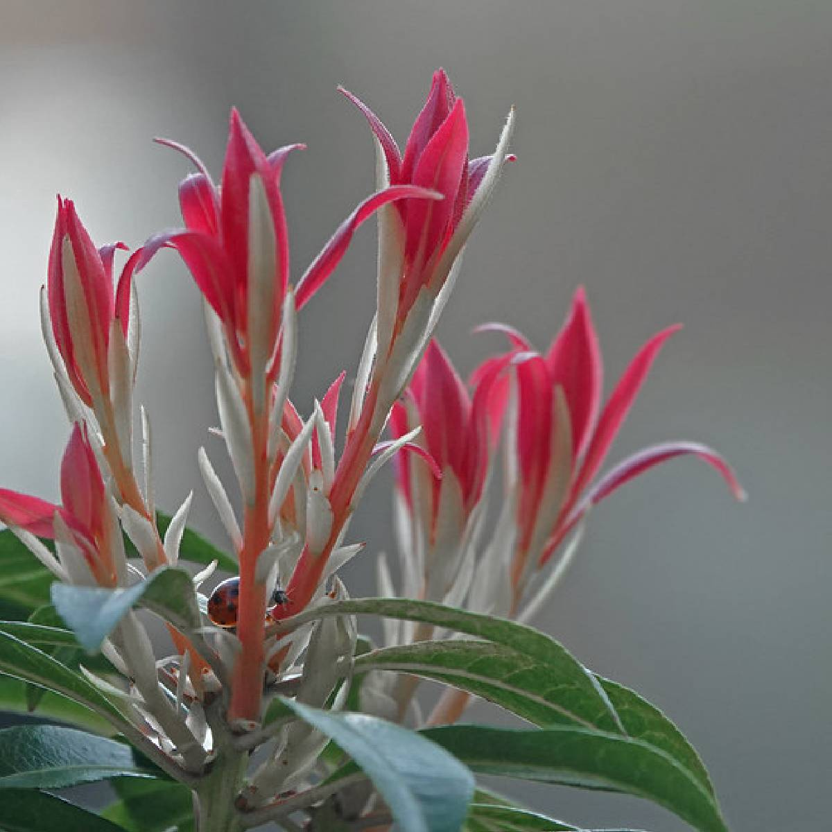 Pieris japoński Forest Flame – efektowna sadzonka z kolorowymi liśćmi i białymi kwiatami