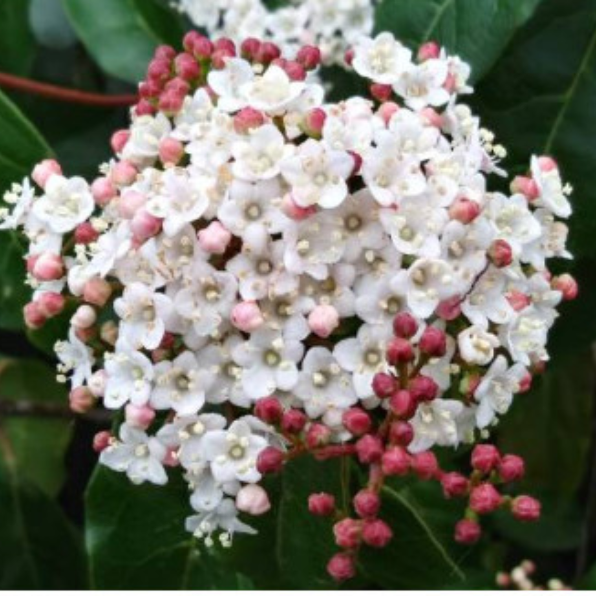Najbardziej niezwykłą cechą kaliny wawrzynowatej jest jej zimowe kwitnienie. Już od stycznia do marca krzew obsypuje się różowobiałymi kwiatami, które rozweselają ogród w najmroczniejszych miesiącach roku. Kwiaty są pachnące i miododajne, stanowiąc cenne źródło nektaru dla pierwszych owadów zapylających. Po kwitnieniu krzew zawiązuje ciemne, granatowoczarne owoce, które długo utrzymują się na pędach. Dzięki nim roślina zyskuje dodatkowe walory ozdobne, a ptaki mają zimą dostęp do pożywienia. Co ważne, błyszczące, ciemnozielone liście zachowują świeżość przez wszystkie pory roku, dlatego krzew wygląda atrakcyjnie również w okresie, gdy większość roślin traci liście.