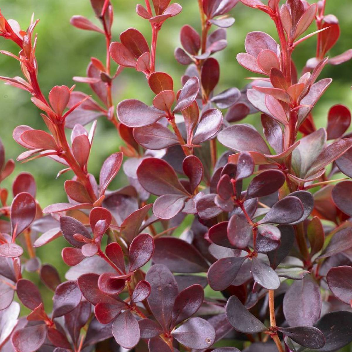 Berberys Thunberga Dart’s Red Lady (Berberis thunbergii ‘Dart’s Red Lady’) to niska, rozłożysta odmiana berberysu o wyjątkowo dekoracyjnym, purpurowym ulistnieniu. Już od wczesnej wiosny krzew przyciąga wzrok intensywnie czerwono-fioletowym kolorem liści, który utrzymuje się aż do późnej jesieni. To roślina o gęstym, krzaczastym pokroju, który sprawia, że idealnie nadaje się do tworzenia barwnych obwódek, niskich żywopłotów oraz jako kontrastowy akcent na rabatach. Dart’s Red Lady rośnie stosunkowo wolno, co jest zaletą dla osób poszukujących roślin o przewidywalnym tempie rozwoju. Dorasta zazwyczaj do ok. 50–70 cm wysokości i podobnej szerokości, tworząc gęste, szerokie poduchy. Forma odmiany jest naturalnie zagęszczona, bez potrzeby częstego cięcia, co czyni sadzonki berberysu wyjątkowo łatwymi w pielęgnacji.