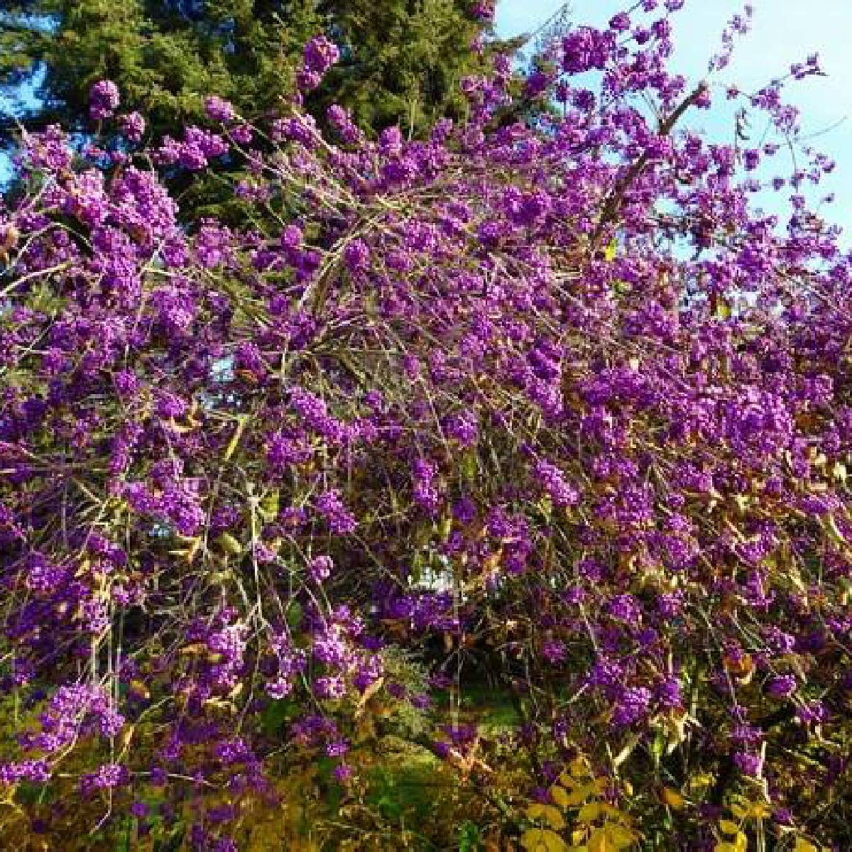Pięknotka Bodiniera Magical Snow Queen (Callicarpa bodinieri 'Magical Snow Queen') to elegancki, zwarty krzew o regularnym, kulistym pokroju, który wyróżnia się wyjątkową harmonią kształtów i intensywnym efektem dekoracyjnym. Osiąga zazwyczaj około 1,2–1,5 m wysokości i podobną szerokość, co sprawia, że doskonale wpisuje się w aranżacje zarówno niewielkich, jak i średnich ogrodów. Rośnie w umiarkowanym tempie, dzięki czemu nie wymaga częstego cięcia, a jego naturalna forma jest atrakcyjna przez cały sezon. Sadzonki pięknotki tej odmiany wyróżniają się regularnością pokroju i obfitym owocowaniem. Roślina stanowi idealny wybór dla osób poszukujących rośliny, która zachowa elegancki wygląd bez skomplikowanej pielęgnacji.