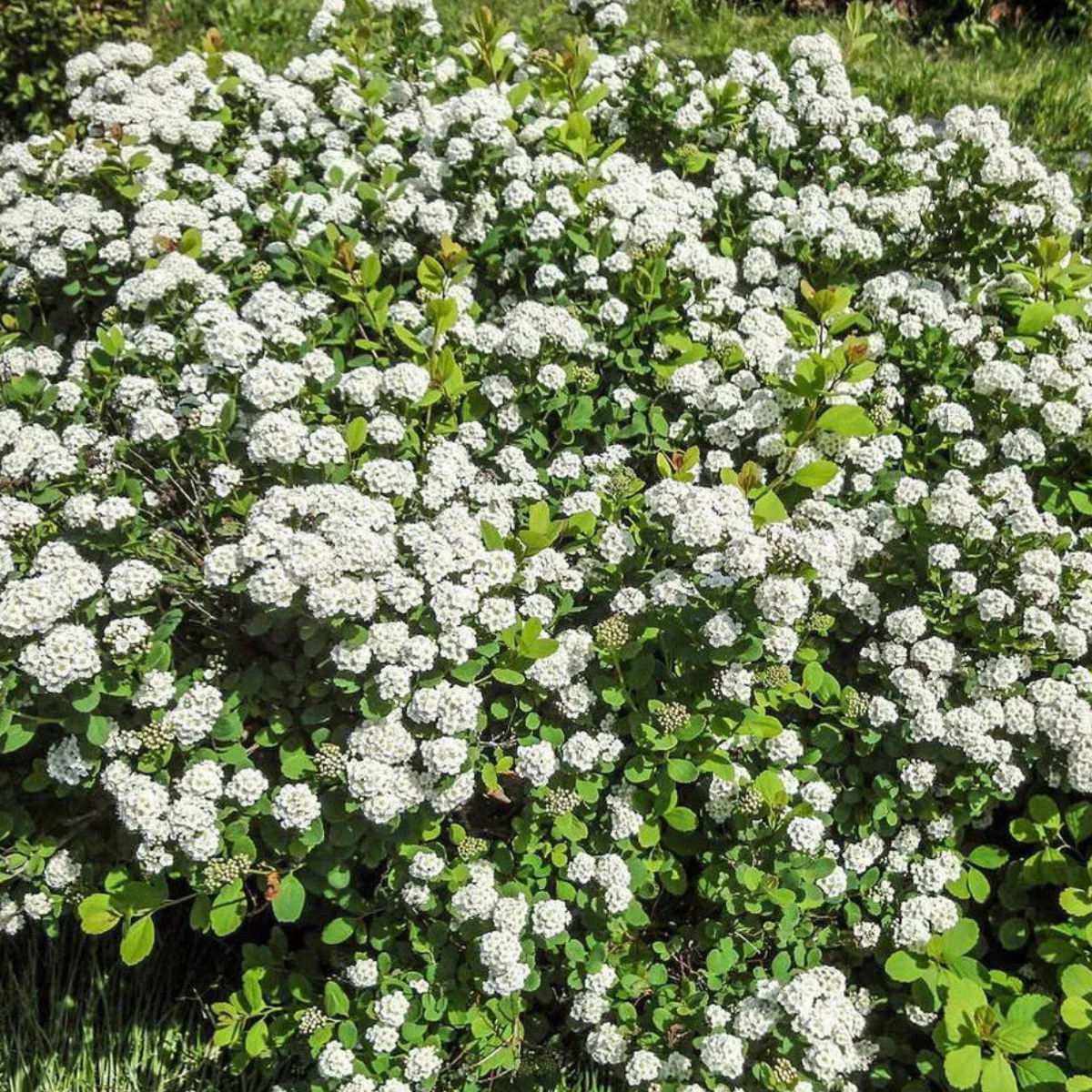 - Wygląd kwiatów: śnieżnobiałe baldachowate kwiatostany o średnicy 3–5 cm, gęsto pokrywające pędy.