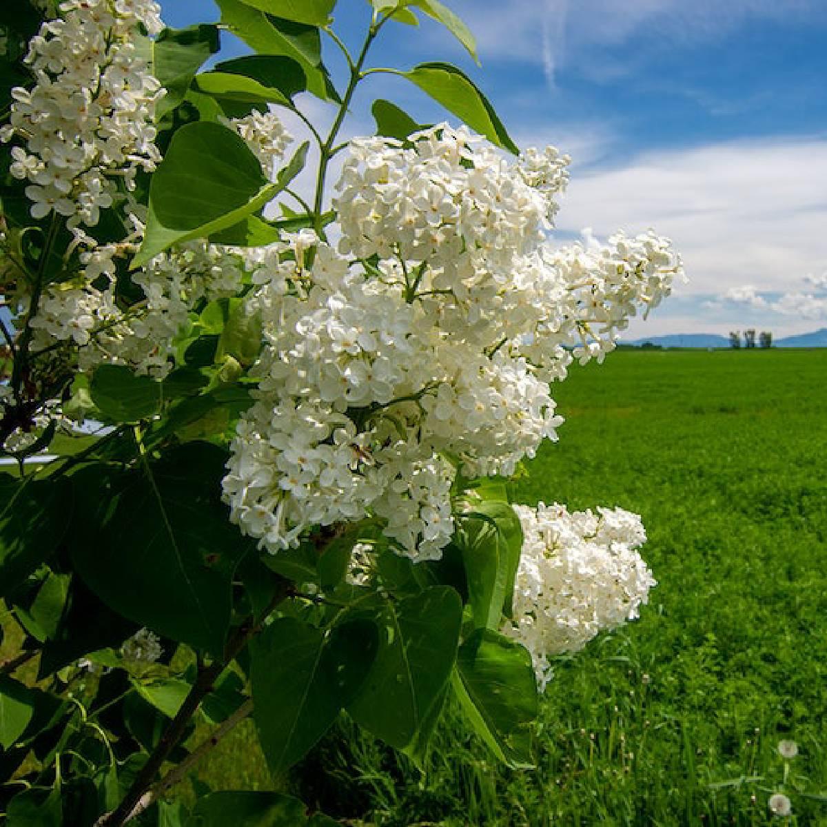 m wysokości i 20 cm rocznie. Kwiaty kwitną obficie, czysto białe, pełne, pachnące, zebrane w duże, gęste, wieloszczytowe wiechy. Najcenniejsza z białych odmian. Kwitnie bardzo późno. Dostarczane przez nas rośliny rozmnażane są metodami in vitro. Nie ma niewspółosiowości podkładki, zwanej „dzików” i należy ją usunąć.