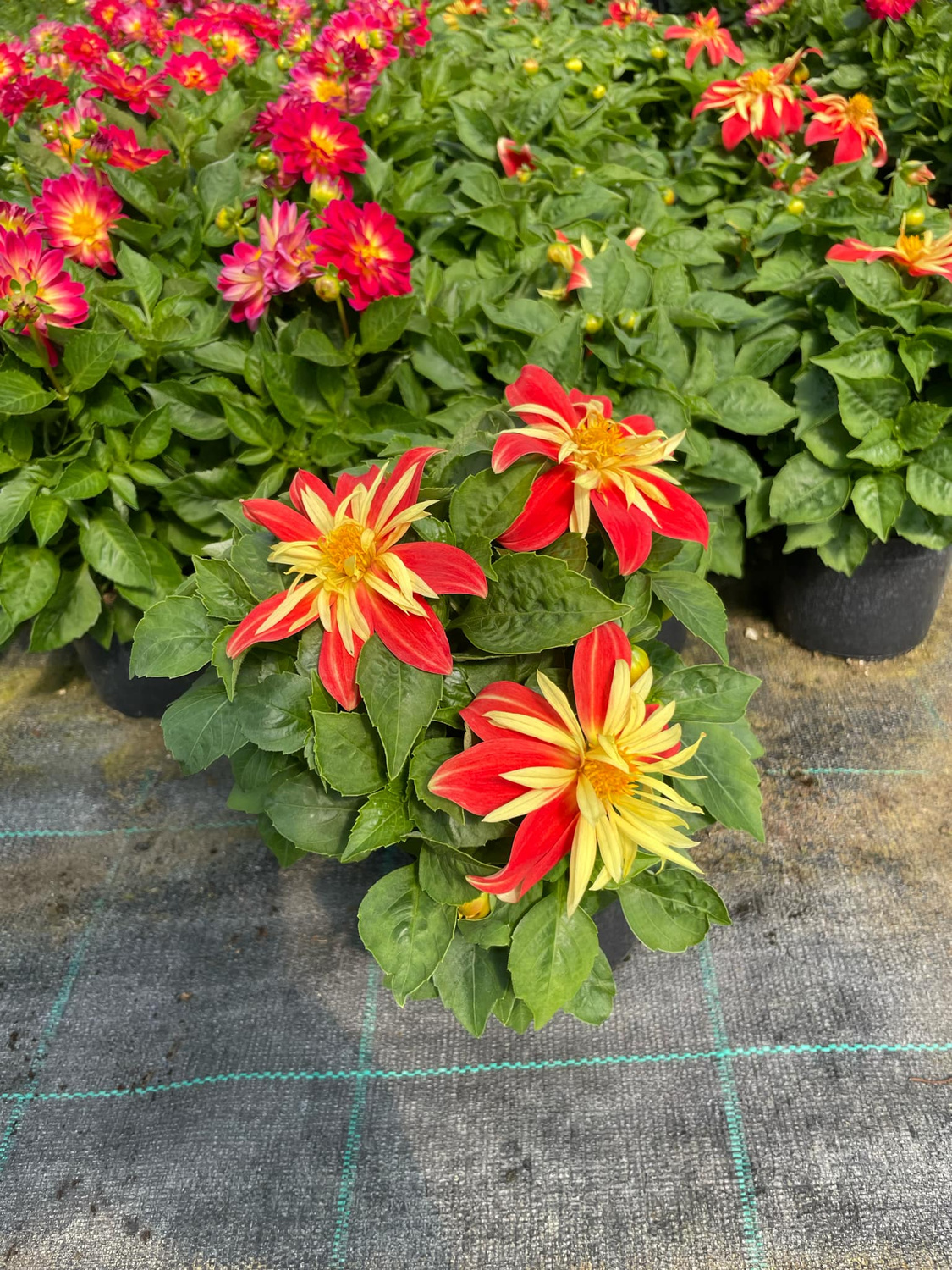 Dalia Suprise Cindy to krzewiasta, łatwa w uprawie roślina z ciemnozielonymi, ząbkowanymi liśćmi. Wytwarza podwójne, czerwono-żółte kwiaty nadając jej piękny wygląd. Duże kwiaty przyciągają wzrok i nadają rabatom, donicom i kompozycjom kwiatowym wyjątkowego charakteru. Roślina dorasta do 30 cm wysokości. Roślina ta przyciąga motyle. Kwitnie od czerwca do października.