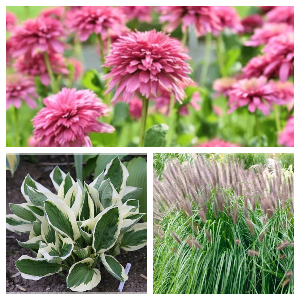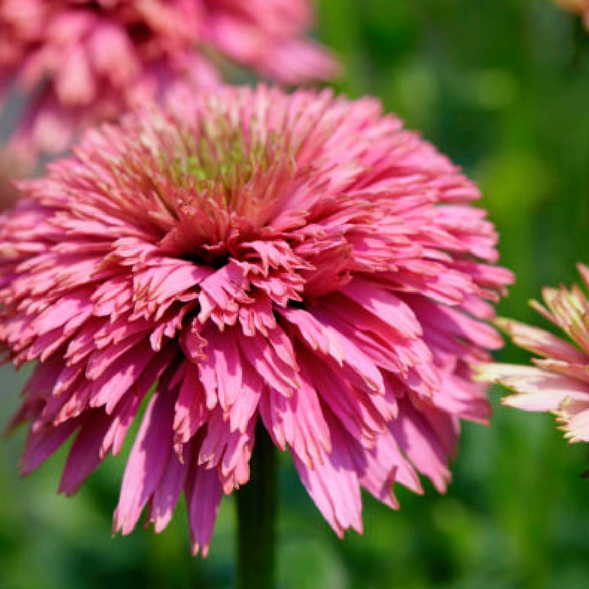 • Jeżówka purpurowa – kompaktowa sadzonka o intensywnie różowych kwiatach z unikalnym, zielonym środkiem. Kwitnie długo i obficie, przyciągając motyle i pszczoły.