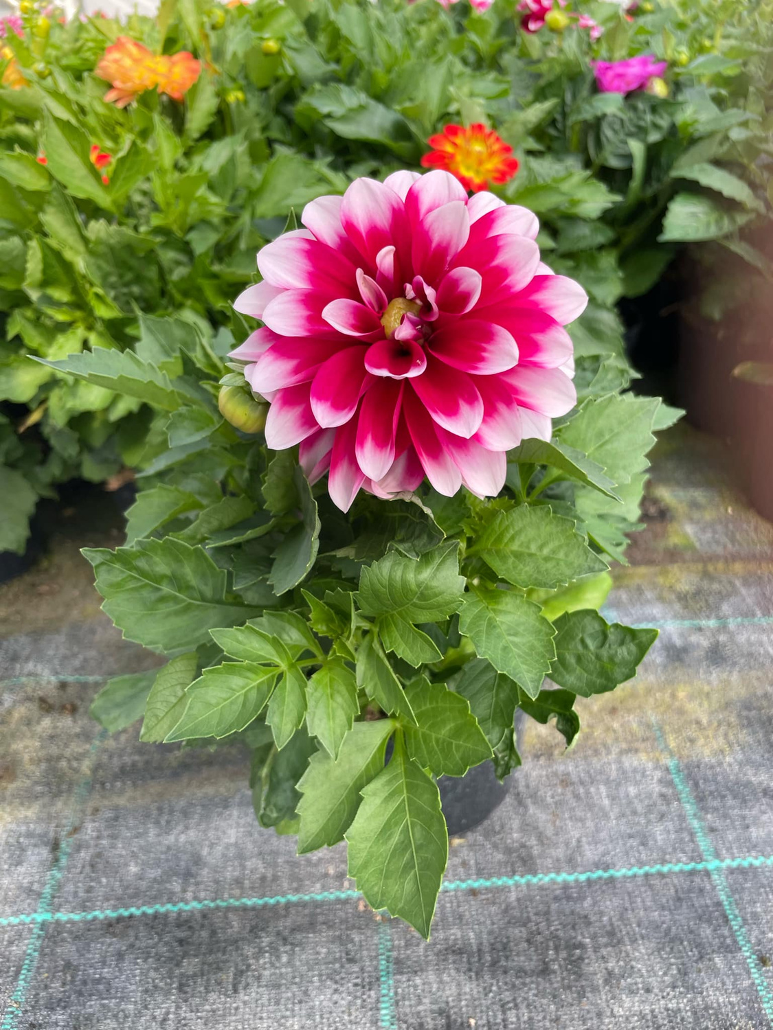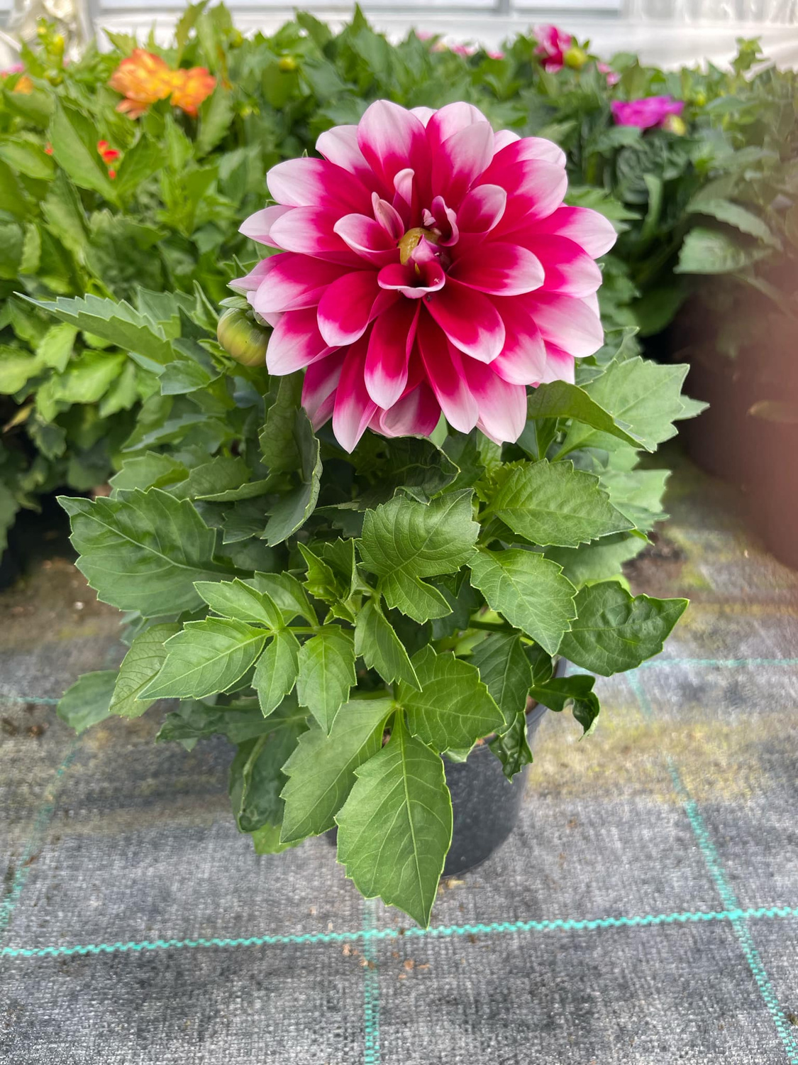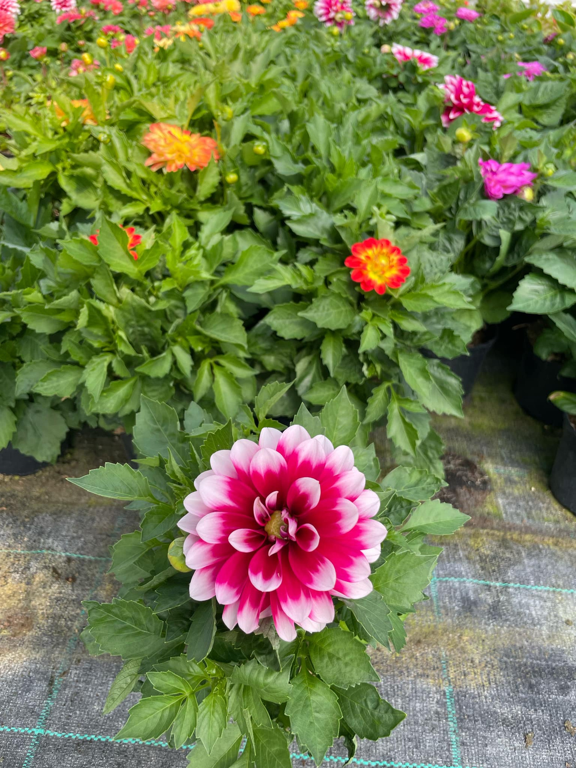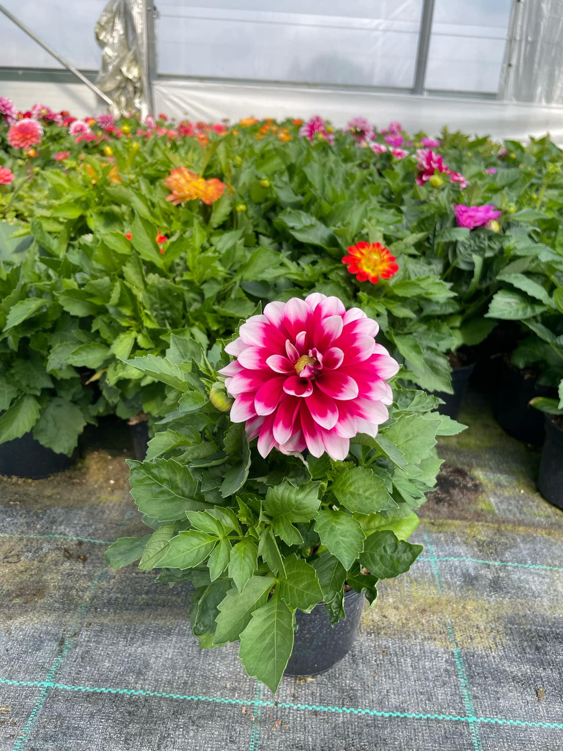 Dalia to kompaktowa roślina. Wytwarza duże, burgundowe kwiaty z białymi końcówkami. Rośnie do 40 cm wysokości, jest idealna na obwódki i do pojemników, oferując ciągły kolor od lata do pierwszych przymrozków. Pakowane po 6 szt.