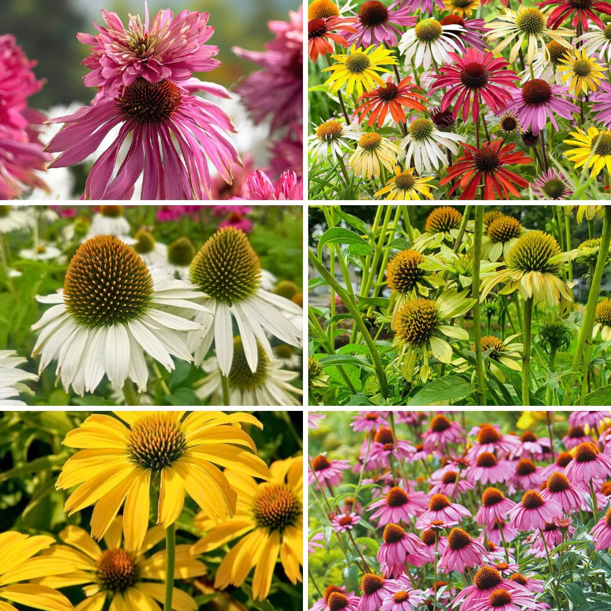 Jeżówki (Echinacea purpurea) to jedne z najpiękniejszych bylin ogrodowych, które nie tylko cieszą oko intensywnymi barwami, ale także przyciągają owady zapylające. Prezentowany zestaw zawiera aż 6 zróżnicowanych odmian jeżówek o efektownych kwiatach pojedynczych i pełnych, w szerokiej gamie kolorystycznej – od cytrynowej żółci po głęboką purpurę. To idealny wybór dla każdego, kto pragnie stworzyć w swoim ogrodzie kwitnącą rabatę odporną na suszę i mrozy.