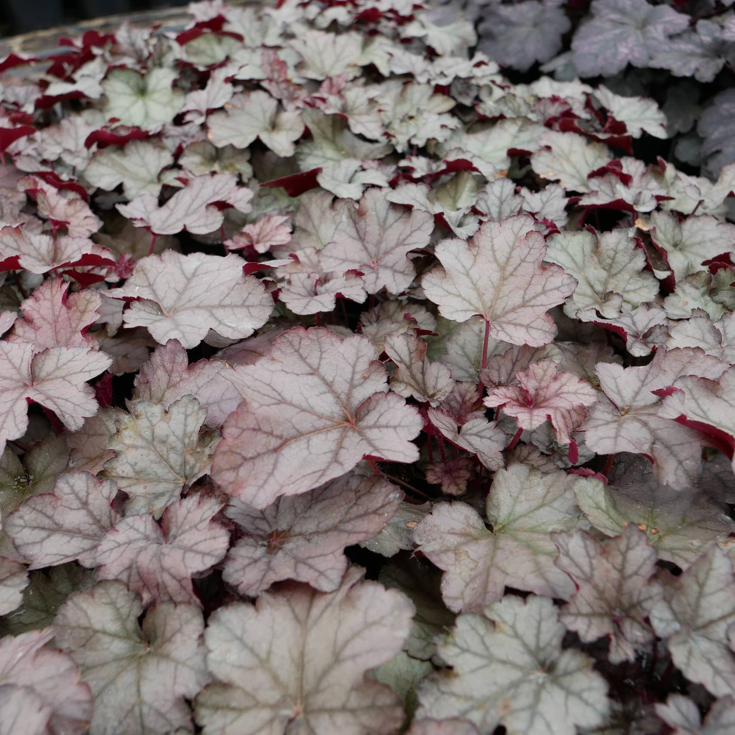 - Frosted Lilac – srebrzysto liliowe liście z ciemnym unerwieniem, delikatny i elegancki wygląd.