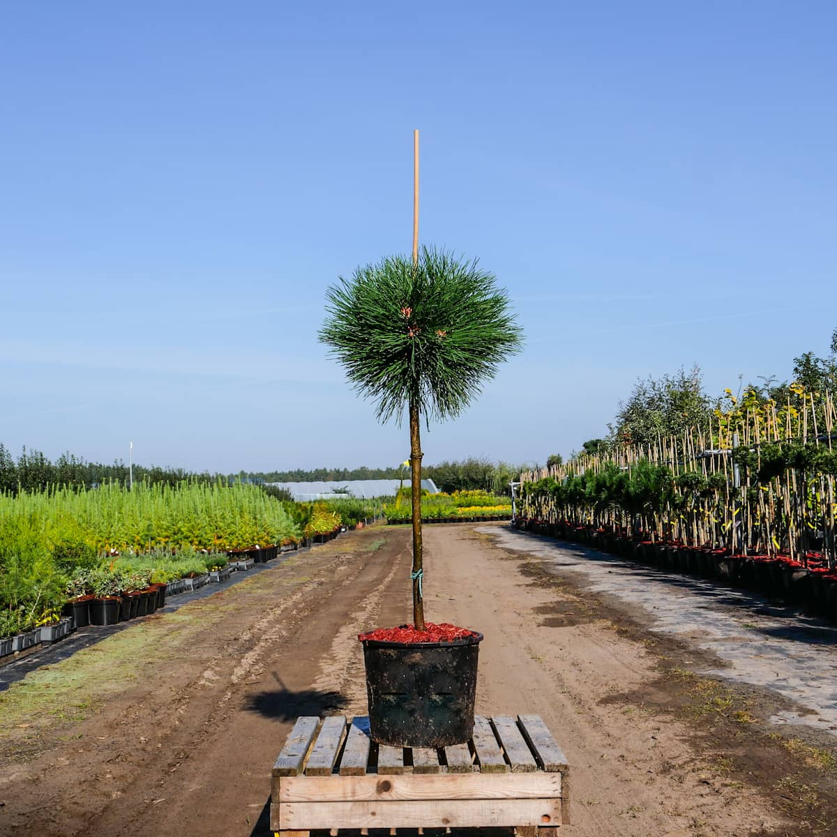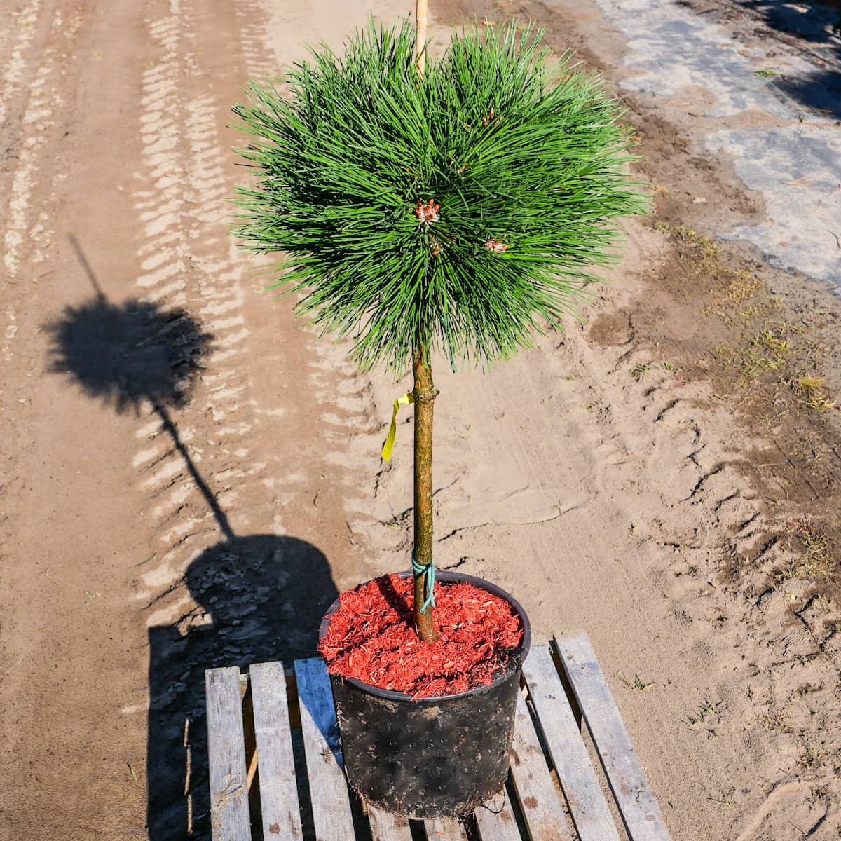 Jeśli szukasz kompaktowej i efektownej rośliny do swojego ogrodu, sosna Biego na pniu to idealny wybór. Jest to wolno rosnąca, karłowa odmiana kosodrzewiny szczepiona na pniu, tworząca gęstą, kulistą koronę o krótkich, ciemnozielonych igłach. Dzięki swojej zwartej formie doskonale sprawdza się w małych ogrodach, na rabatach, skalniakach, a także w donicach, wprowadzając elegancki, zimozielony akcent dekoracyjny.