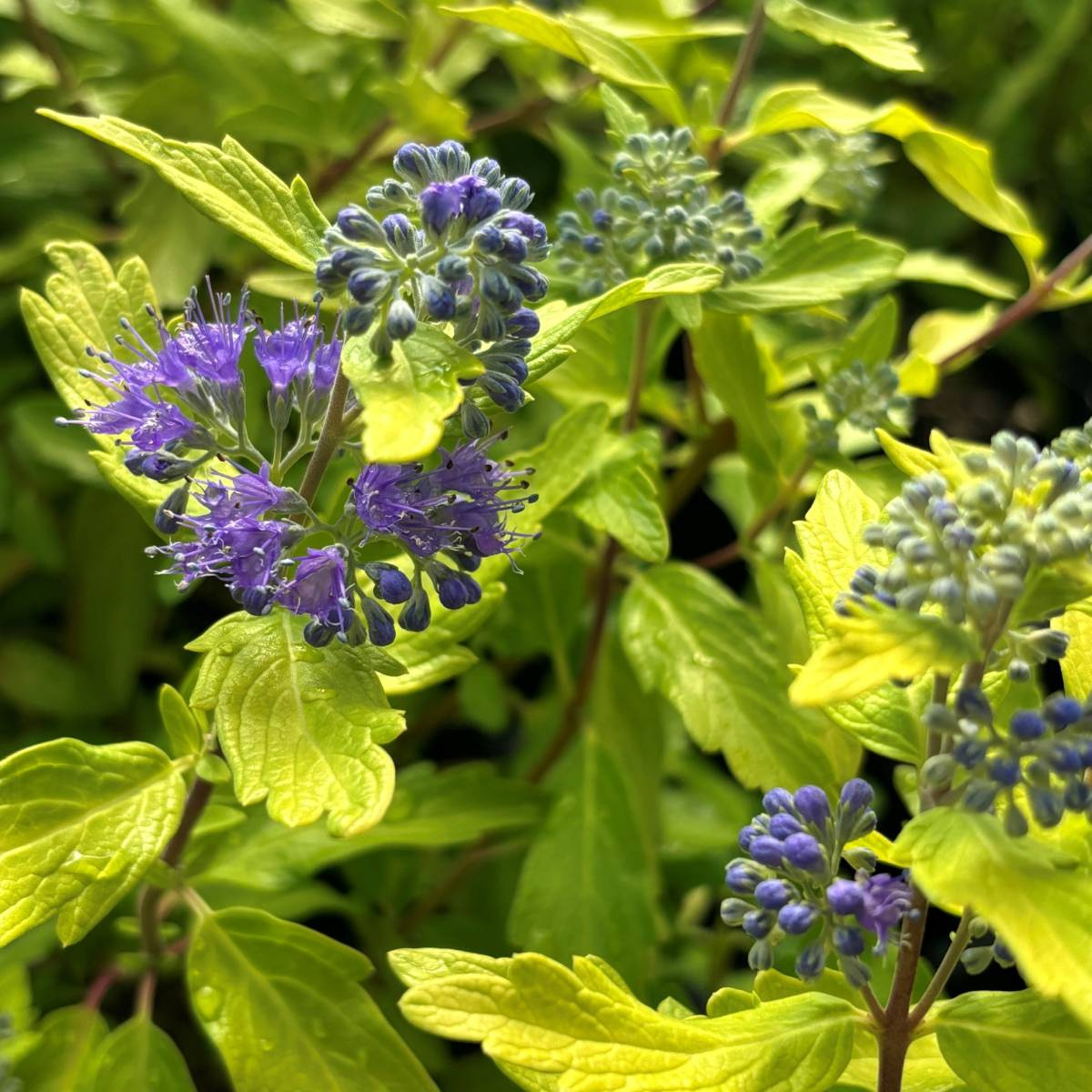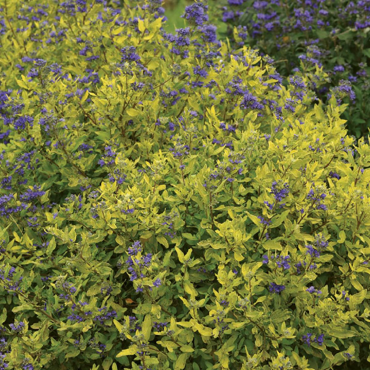 Barbula klandońska Gold Crest – krzew o złocistych liściach i późnym, niebieskim kwitnieniu