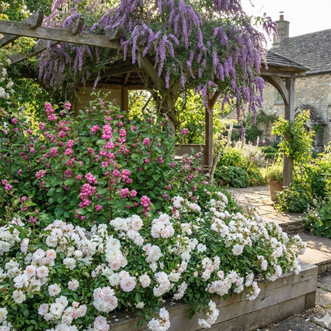 Rosa, Buddleja Alternifolia, Symphoricarpos c