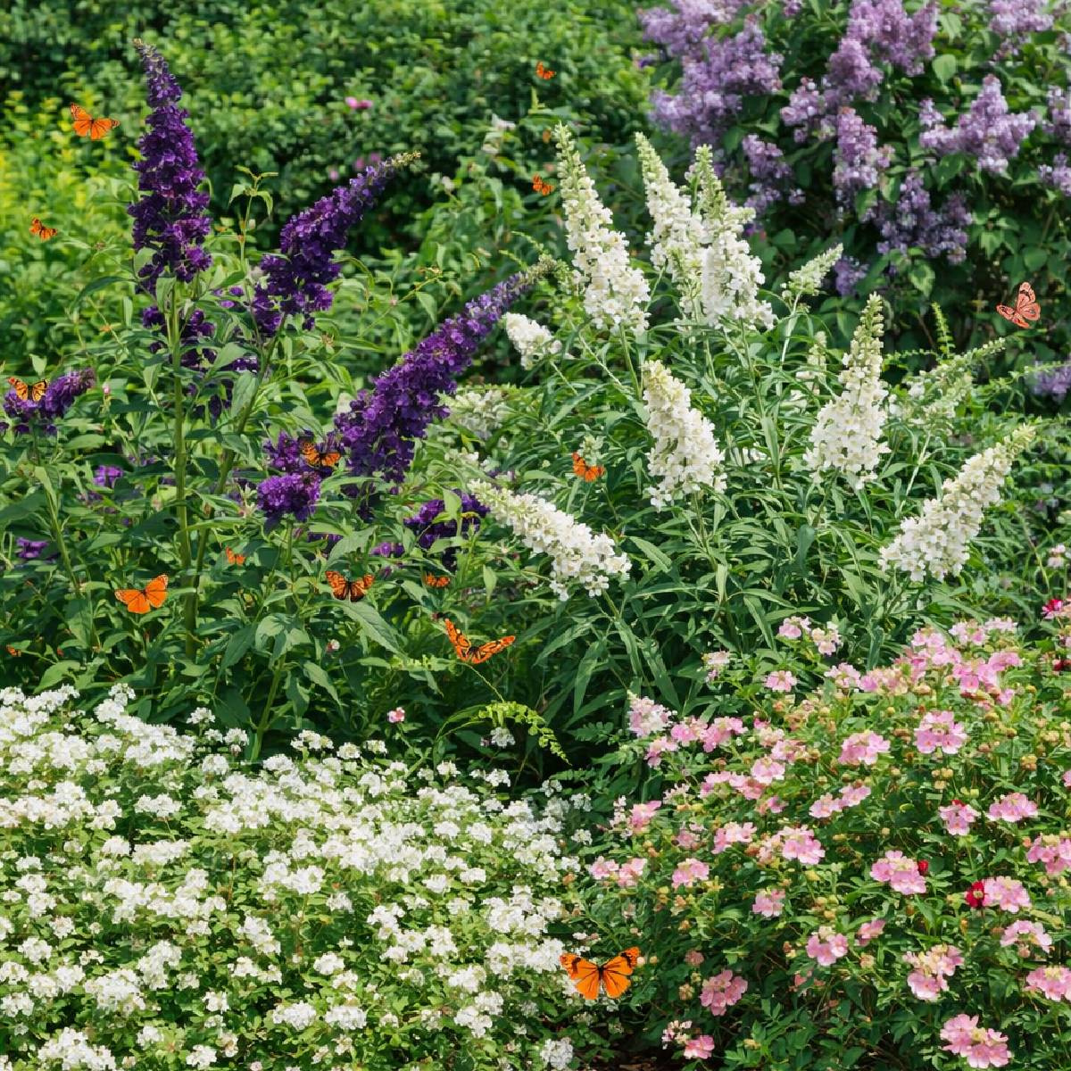 Buddleja davidii, Potentilla fruticosa, Syrin