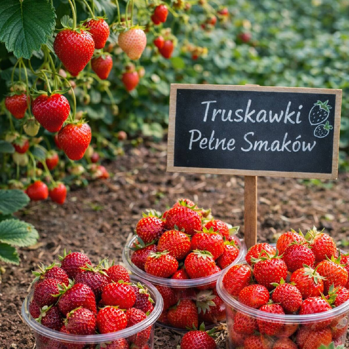 W zestawie dominują truskawki o wyraźnym, „pełnym” smaku – słodkie, aromatyczne, z delikatną nutą kwasowości, która podkręca świeżość. Owoce są zwykle intensywnie czerwone lub ciemnoczerwone, często z atrakcyjnym połyskiem. Dzięki dobrej jędrności łatwiej je zbierać i przechowywać, a także wykorzystywać w kuchni bez ryzyka, że szybko się rozpadną.