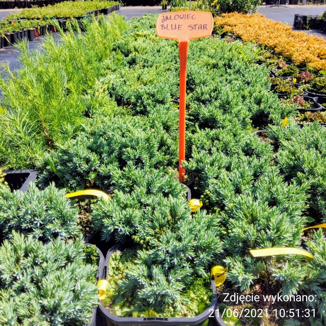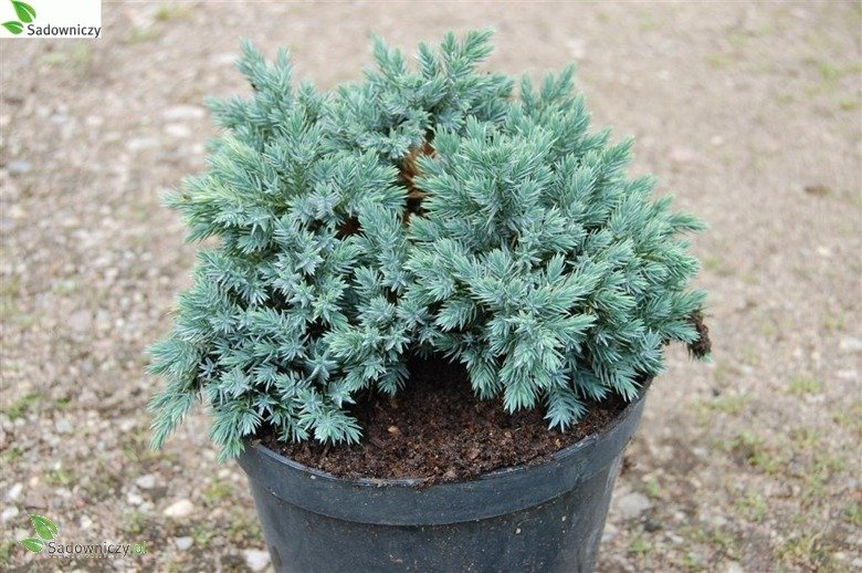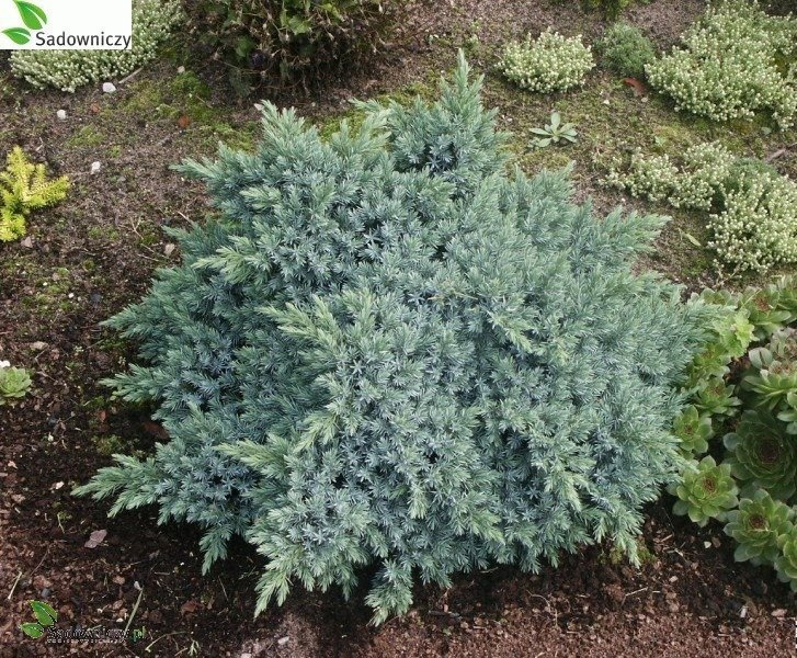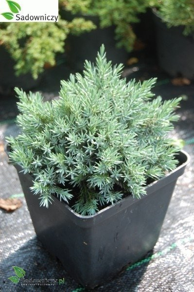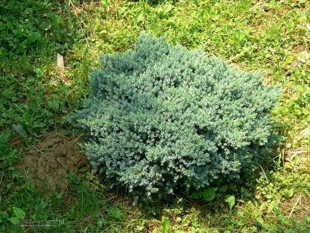 Wolno rosnący krzew iglasty o gęstym, poduchowatym pokroju. Cechuje się wolnym wzrostem, osiągając po 10 latach do 0,5m. Gęsto ułożone pędy pokryte są kłującymi, stalowo niebiskimi igłami. Początkowo rośnie w formie kulistej, później przebiera kształt nierównomierny, przypominający trójwymiarową gwiazdę. Jest to roślina zimozielona.
