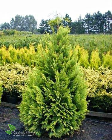 Końcówki młodych przyrostów mają kolor złocisto-żółty do cytrynowego. Pędy gęste, wzniesione do góry.