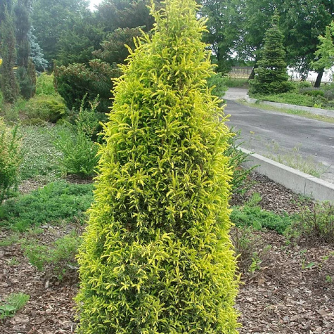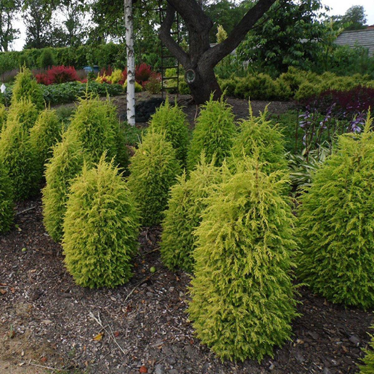 Dzięki kolumnowemu pokrojowi i intensywnej barwie igieł złocisty jałowiec doskonale sprawdza się w wielu aranżacjach ogrodowych: