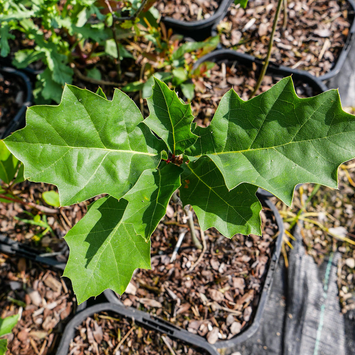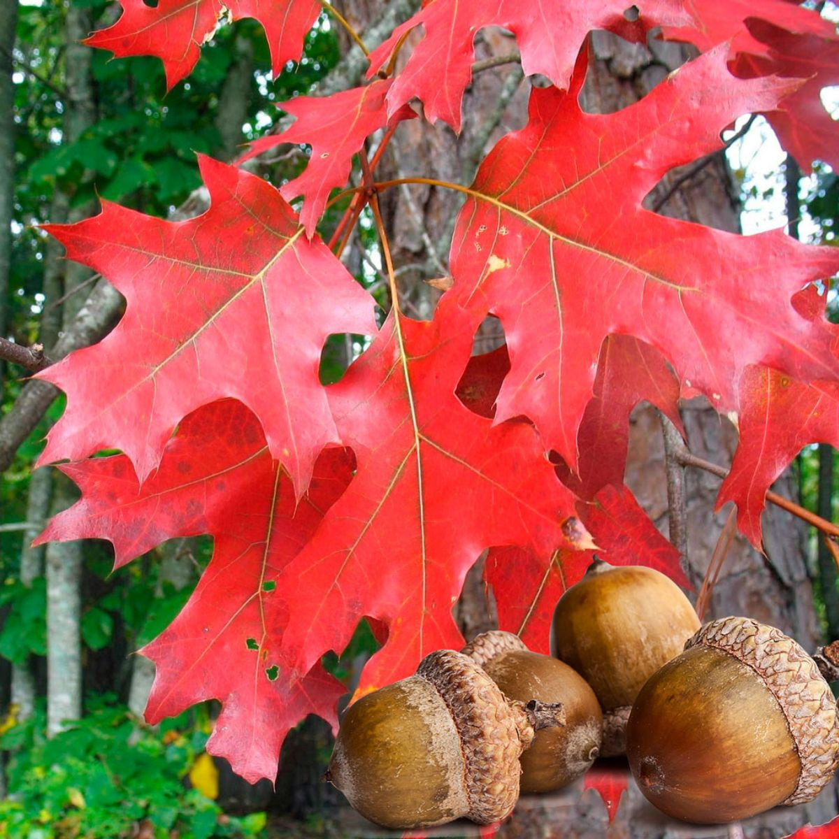 Dąd czerwony - Quercus rubra - Wysokie i okazałe drzewo liściaste o grubym, zwykle nisko rozgałęzionym pniu i rozłożystej koronie wspartej na kilku potężnych, często łukowato wygiętych konarach. Dorasta do 20 - 25m wysokości. Główny walor dekoracyjny dębu czerwonego stanowią jego głęboko klapowane i bardzo ostro ząbkowane liście, które jesienią przebarwiają się (zwłaszcza u młodych drzew) na niezwykle efektowny, szkarłatnoczerwony kolor. Drzewo to jest łatwe w uprawie, a przy tym jest odporne na niekorzystne czynniki, takie jak mróz, susza, zacienienie czy zanieczyszczenia powietrza. Dodatkową zaletą dębu czerwonego jest stosunkowo duże tempo wzrostu - jest to jeden z najszybciej rosnących dębów.
