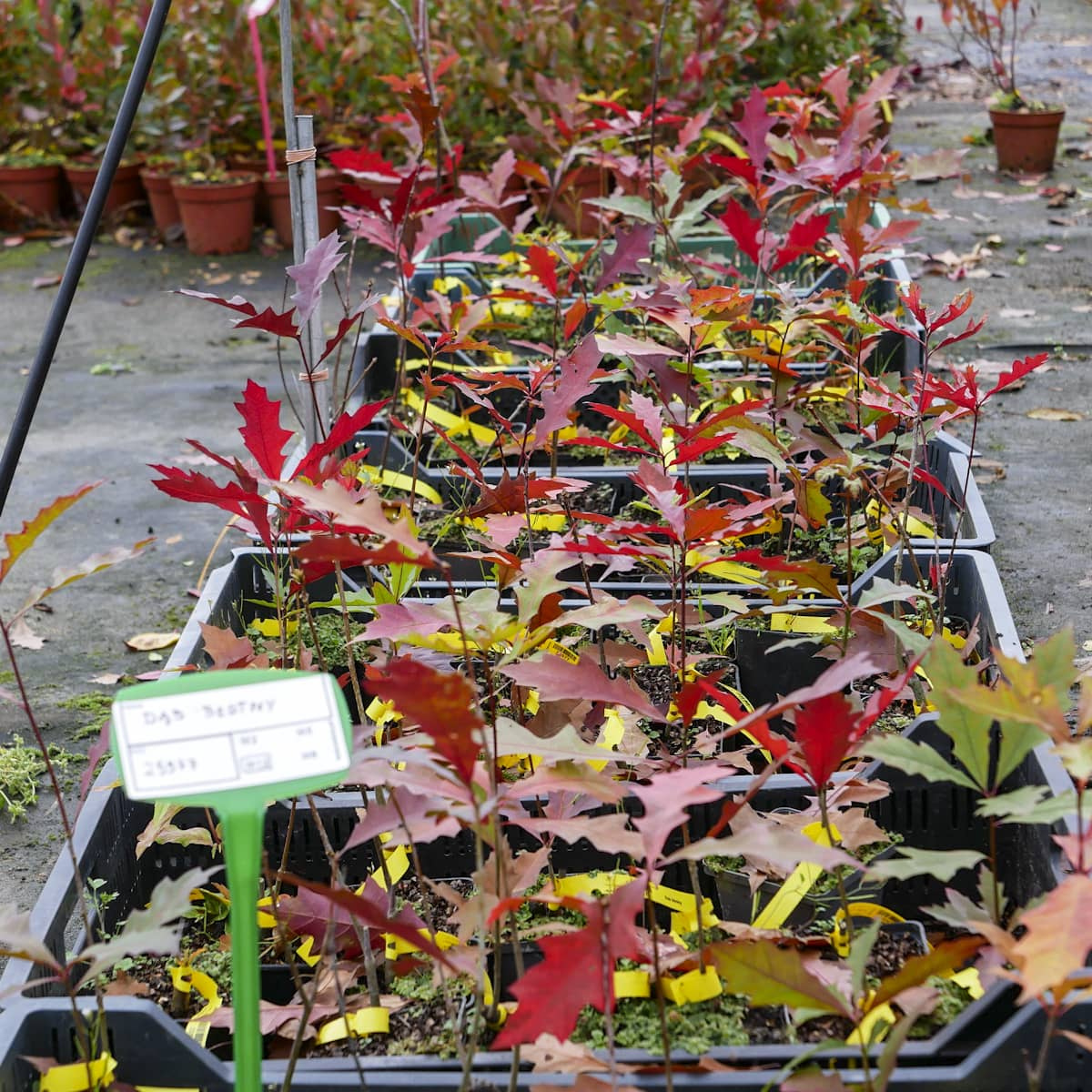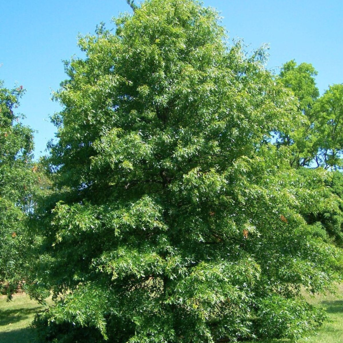 Dąb błotny - Quercus palustris - drzewo dorastające do 20–30 m wysokości. Stare drzewa są łatwe do rozpoznania - mają zwisające dolne gałęzie. Wymaga gleb wilgotnych i rośnie powoli. Liście tego gatunku jesienią przebarwiają się na czerwono.