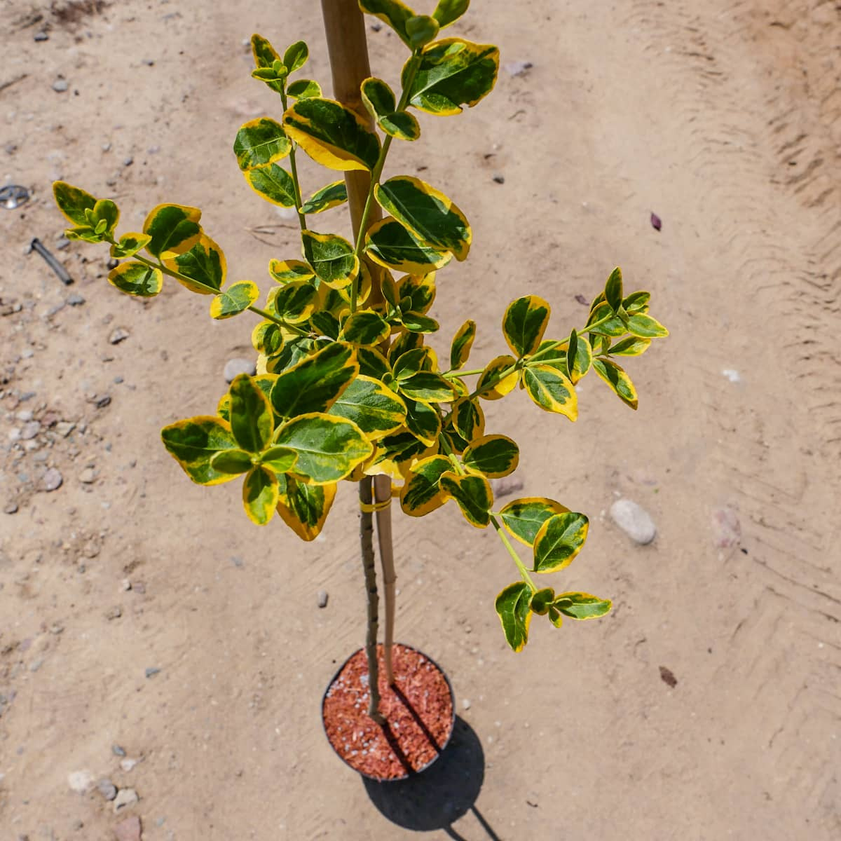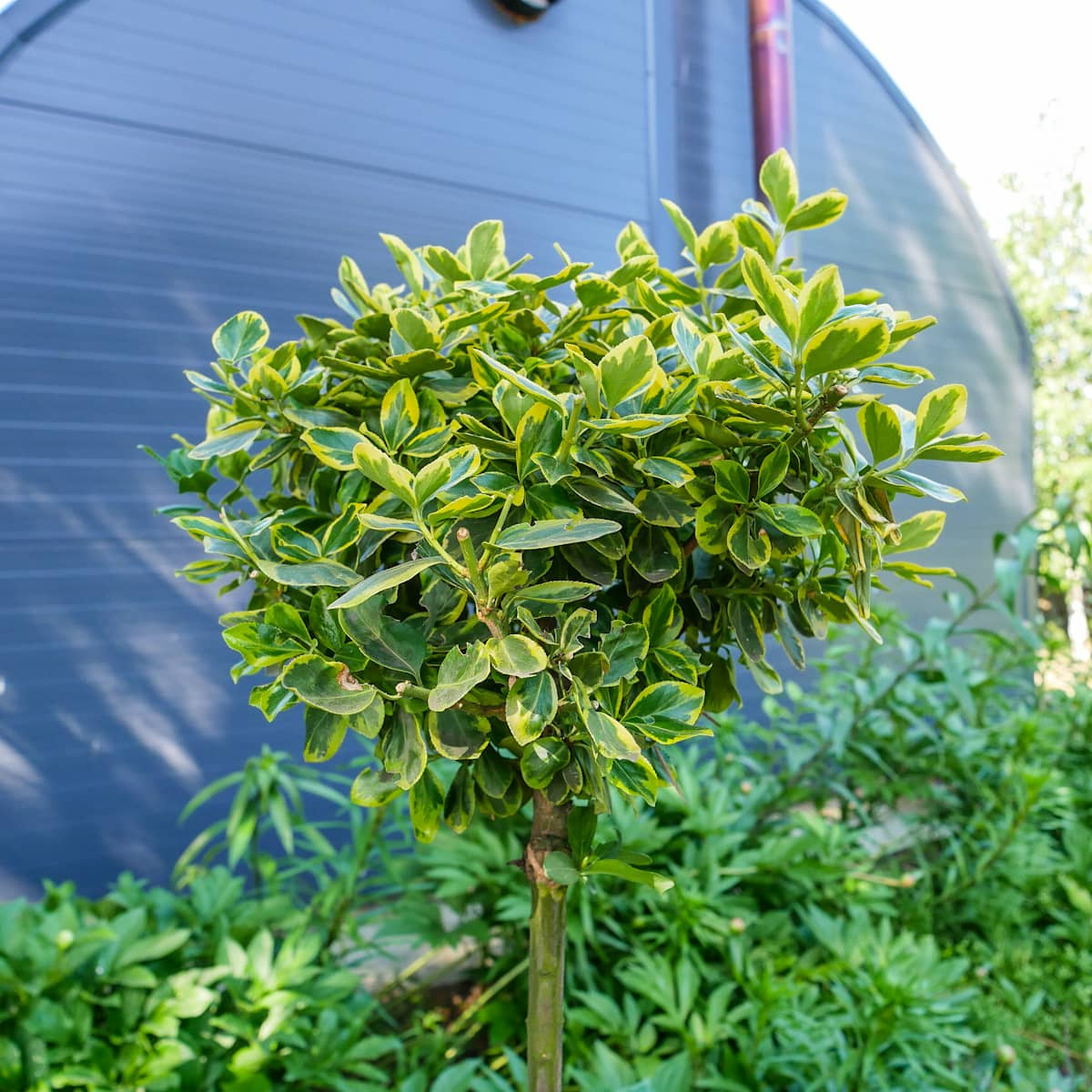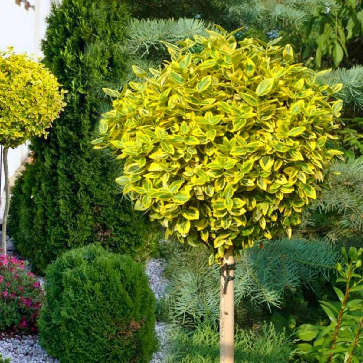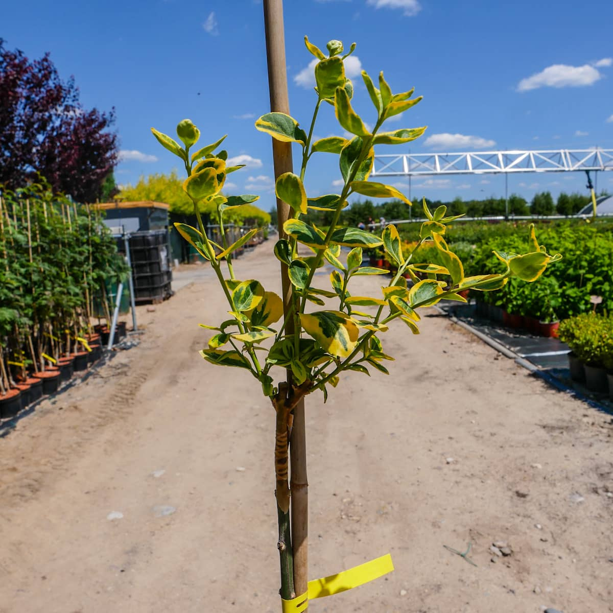 Liście ciemnozielone z dominującym, żółtym obrzeżeniem. Najlepiej rośnie na stanowiskach półcienistych, chociaż znosi także słońce. Odznacza się dużą wytrzymałością na mrozy. polecana do małych ogrodów jak i do donic.
