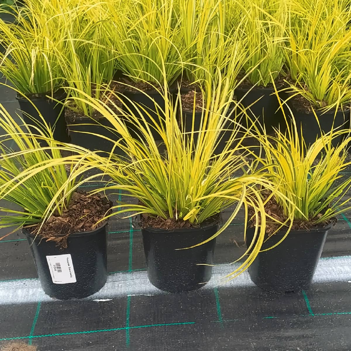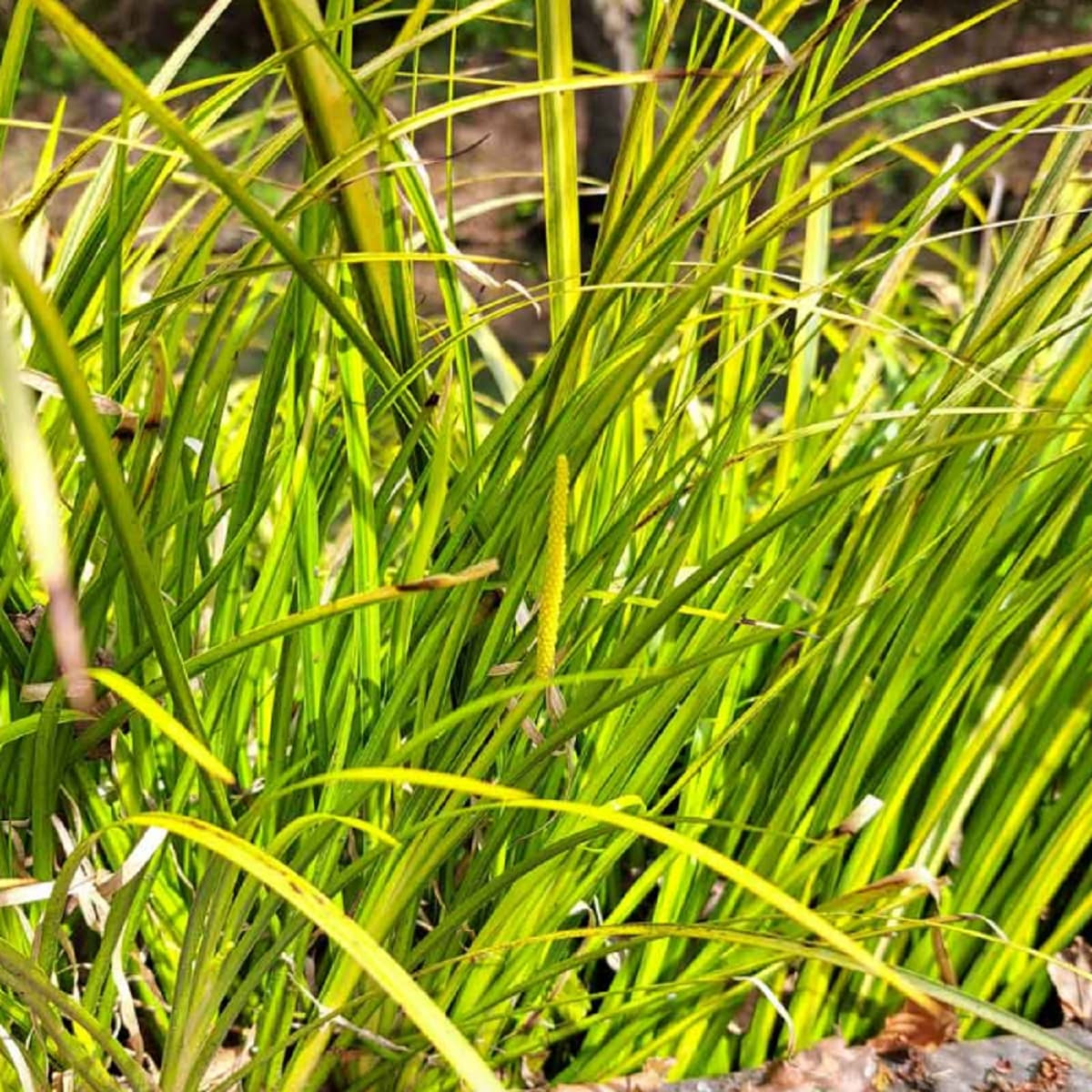 Tatarak trawiasty ‘Ogon’ (Acorus gramineus) to niezwykle dekoracyjna bylina o złocisto-zielonych, pasiastych liściach, które układają się w eleganckie wachlarze. Pochodzący z Azji gatunek doskonale sprawdzi się w ogrodach wodnych, na rabatach wilgotnych oraz w donicach tarasowych, wprowadzając egzotyczny akcent i naturalną świeżość.
