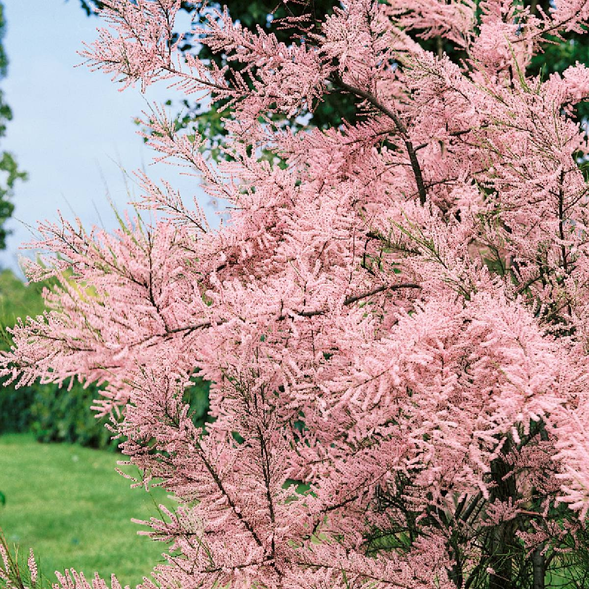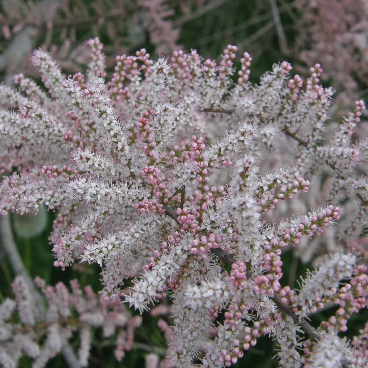 Krzew do 4 m. Pędy ciemnobrązowe. Liście łuskowate. Kwiaty różowe, pachnące, zebrane w wąskie grona. Bardzo wytrzymałe na suszę i mrozy.