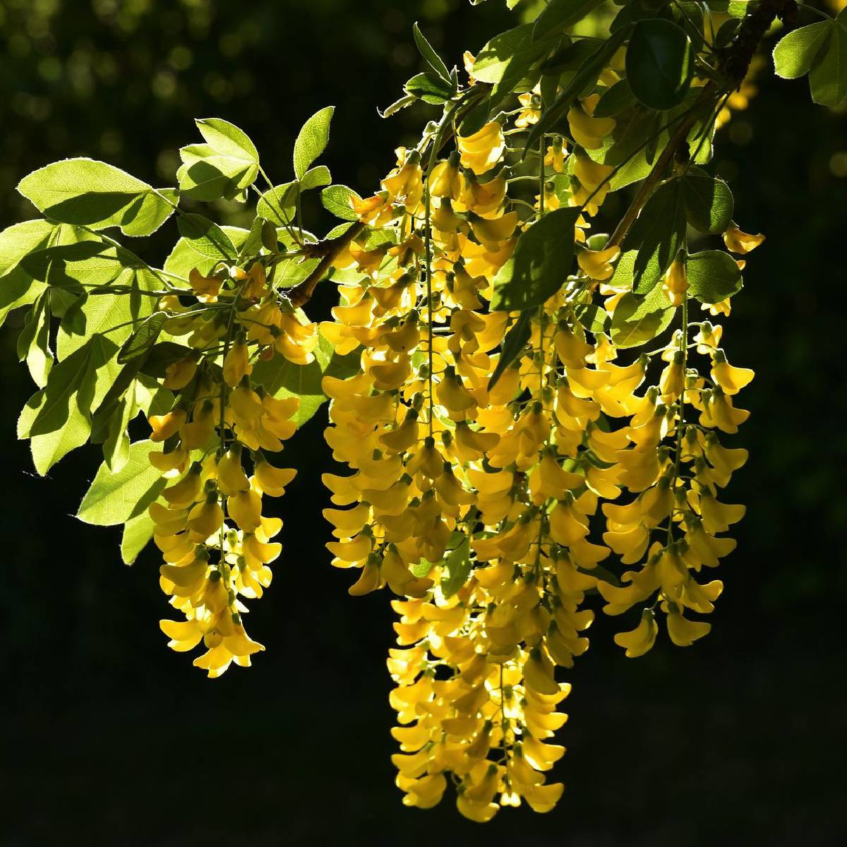 Jeden z bardziej wyróżniających się zwisających krzewów, szczepiony. Liście sezonowe, złożone, jasnozielone. Kwiaty żółte, V. Najlepiej prezentuje się sadzona pojedynczo na tle innych roślin.