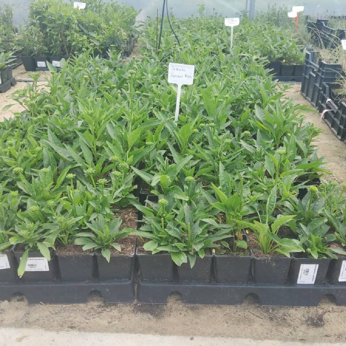 Jeżówka Harvest Moon to wyjątkowa odmiana wyróżniająca się kwiatami w intensywnym kolorze mango. Kwiaty osadzone są na wysokich, wyprostowanych łodygach, co nadaje roślinie elegancji i sprawia, że doskonale prezentuje się zarówno na rabatach, jak i w ogrodach naturalistycznych. Jej kwitnienie trwa od lipca do września, wprowadzając do ogrodu ciepłe, letnie barwy. Idealna do sadzenia w grupach z innymi jeżówkami lub rudbekiami, tworząc efektowne kompozycje kolorystyczne. Może być także uprawiana na kwiat cięty, zachwycając w wazonach.