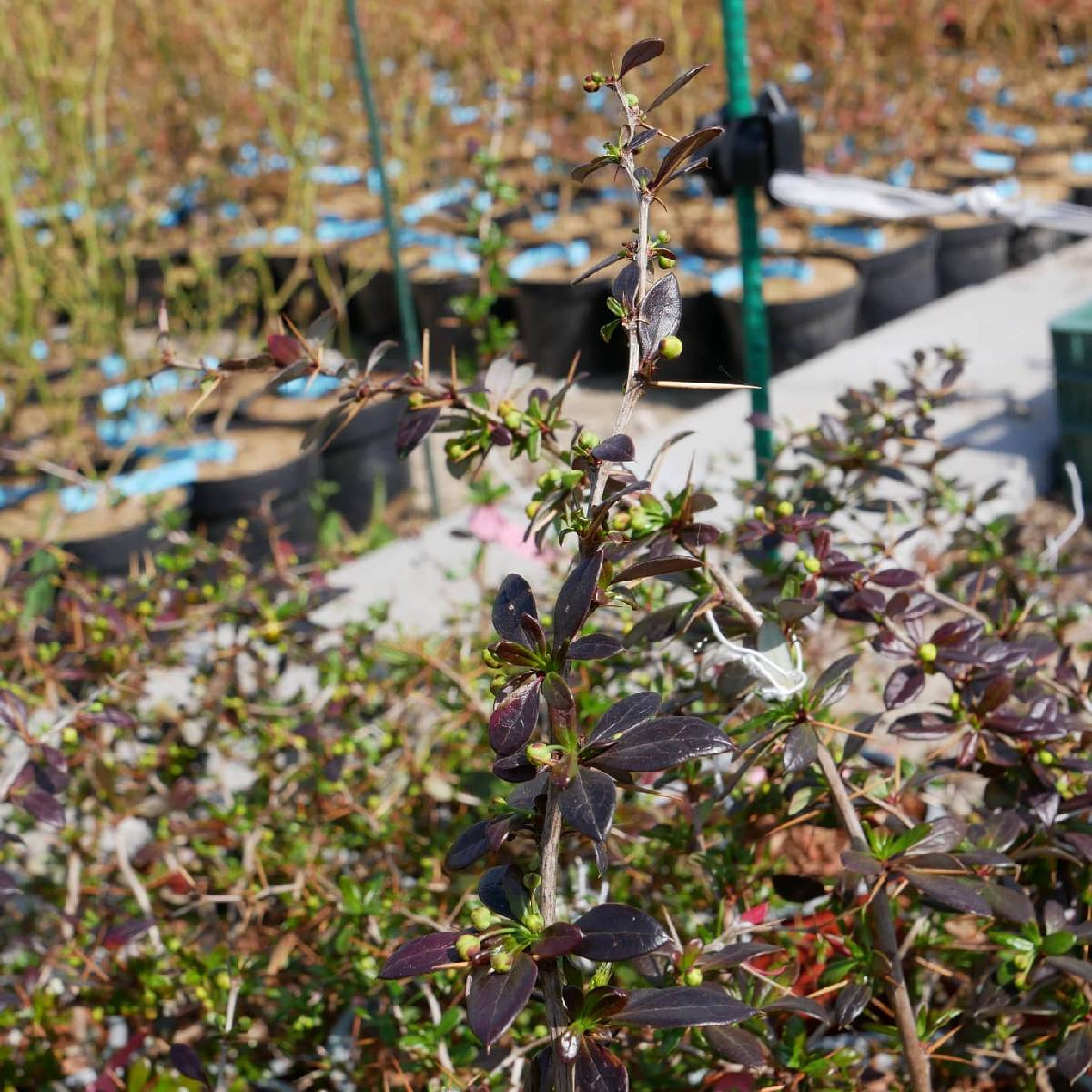 Berberys pośredni Red Yevel (Berberis × media 'Red Yevel') to dekoracyjny krzew liściasty o naturalnym, kulistym pokroju i bordowej barwie liści. Należy do grupy berberysów pośrednich, czyli mieszańców łączących cechy różnych gatunków – w tym przypadku wyraźnie zauważalna jest odporność, zwarta forma i regularny wzrost. Krzew rozwija się umiarkowanie szybko, co oznacza, że z roku na rok zyskuje na objętości bez nadmiernego rozrastania się. Docelowo osiąga około 100–120 cm wysokości i podobną szerokość, zachowując symetryczną, zwartą sylwetkę. Odmiana Red Yevel doskonale sprawdza się w ogrodach klasycznych, naturalistycznych i użytkowych – wszędzie tam, gdzie ceniony jest umiar, elegancja i funkcjonalność. Nie jest to roślina dominująca, ale z powodzeniem pełni rolę stabilnego tła lub spokojnego wypełnienia wśród barwniejszych bylin i krzewów. Sadzonki berberysu pośredniego Red Yevel jedna z tych odmian, które mimo braku ekstrawagancji, wprowadzają porządek i równowagę do kompozycji.