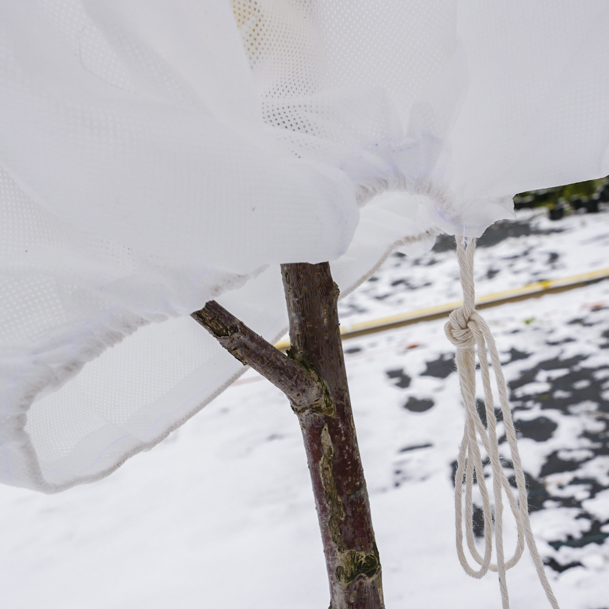Kaptur nakładamy bezpośrednio na roślinę i zaciskamy za pomocą wszytego sznurka ściągającego - możliwie jak najbliżej ziemii. Kaptur wykonany jest z agrowłókniny posiadającej stabilizator UV, dlatego możemy stosować go wielokrotnie.