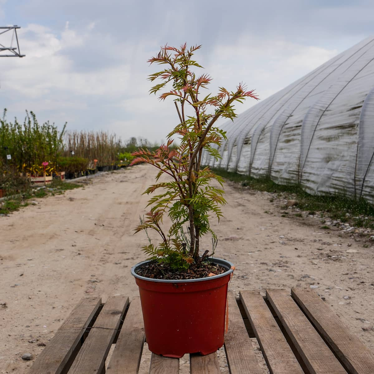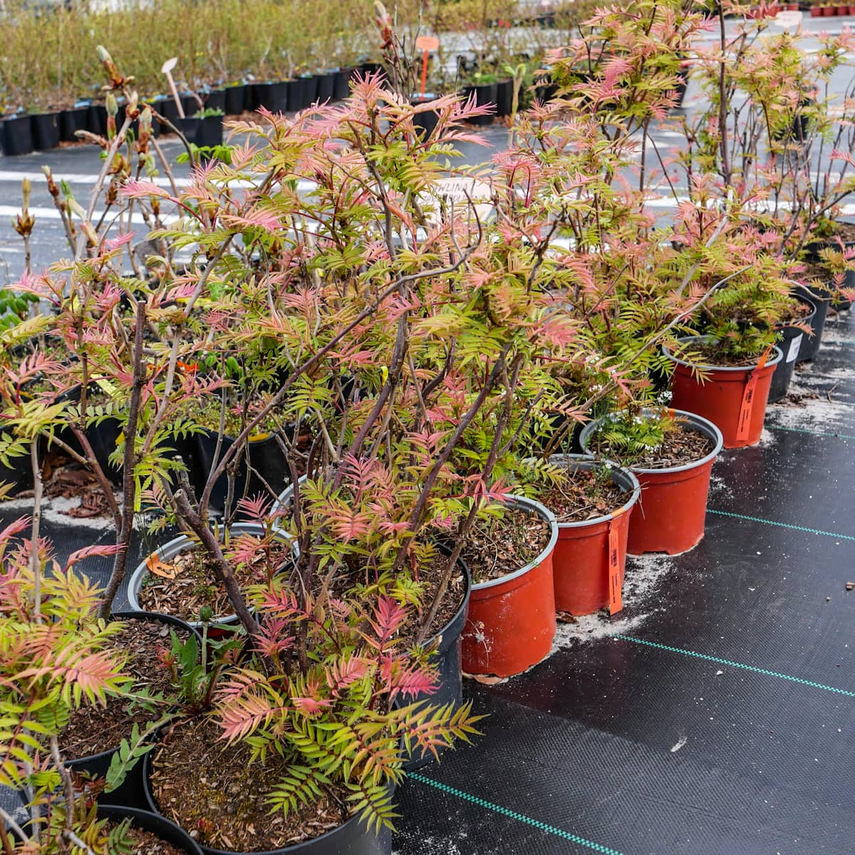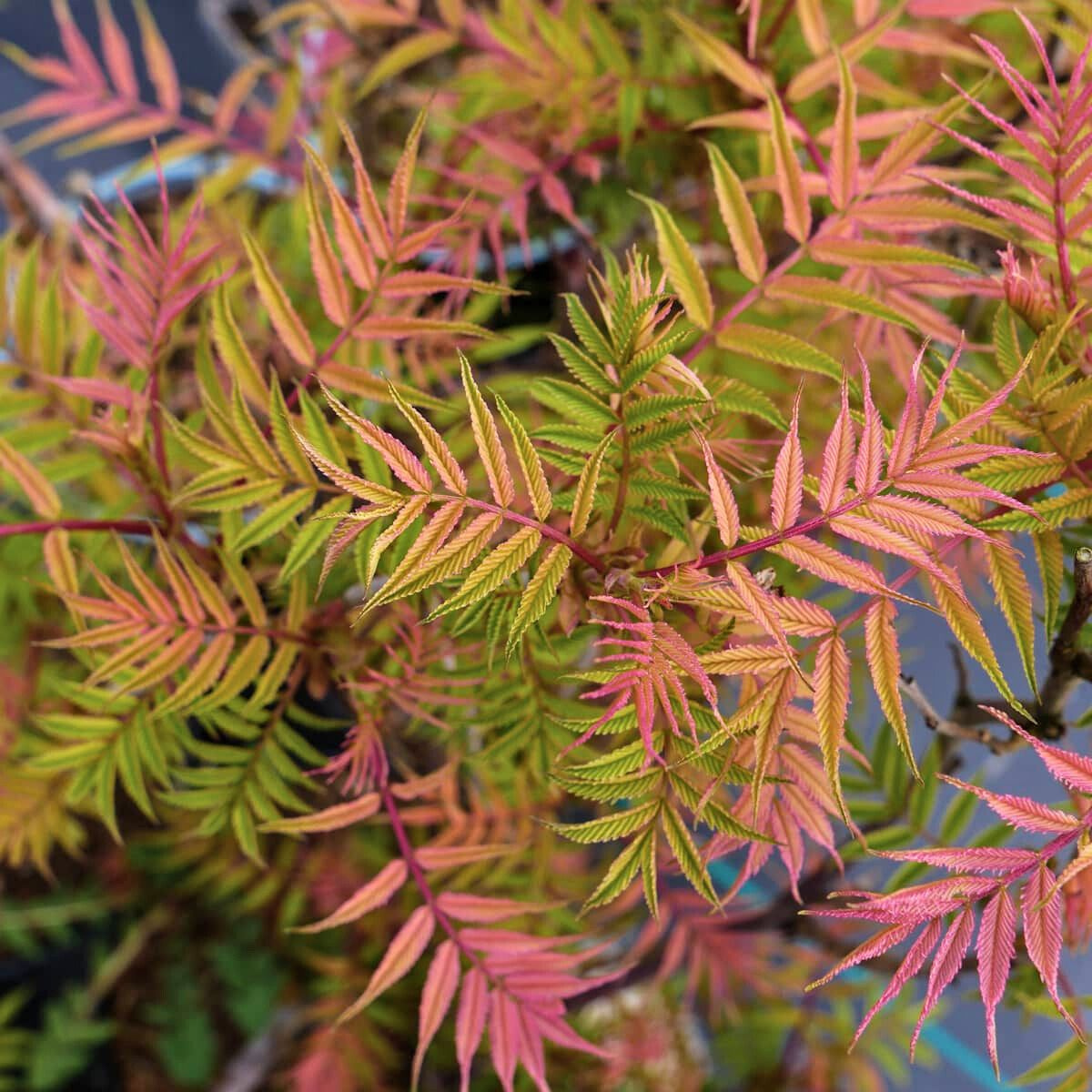 Zwarty krzew osiągający 2,5 m wys. Liście pierzaste, wcześnie rozwijające się wiosną, kiedy te najmłodsze mają różowopomarańczowy kolor, który u starszych przechodzi w żółty. Polecany do sadzenia w zieleni osiedlowej i parkowej.