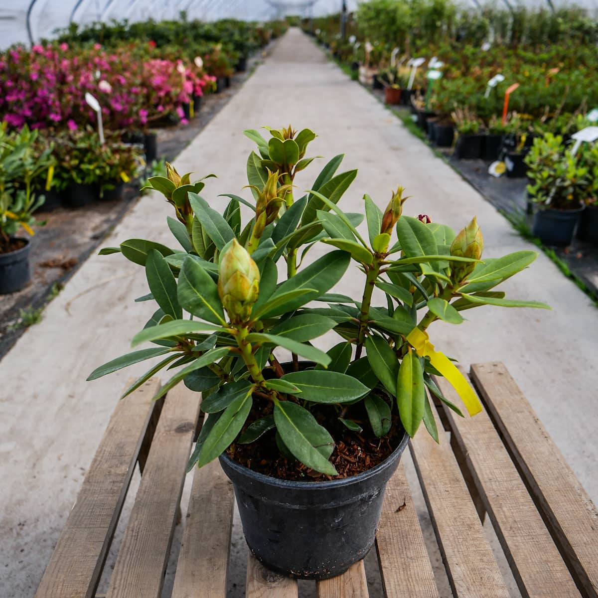 Rododendron czerwony (Rhododendron) to efektowny, zimozielony krzew, który z powodzeniem łączy elegancję z odpornością. Jego największym atutem są intensywnie czerwone kwiaty oraz gęste, skórzaste liście w kolorze ciemnozielonym, które pozostają ozdobne przez cały rok. Roślina charakteryzuje się średnim tempem wzrostu – w ciągu kilku lat osiąga wysokość około 1,2–1,5 metra, przy podobnej szerokości. Pokrój jest regularny, zaokrąglony, co sprawia, że krzew wygląda estetycznie bez konieczności częstego formowania. Sadzonki rododendronu są chętnie wybierane przez ogrodników, którzy cenią sobie połączenie wyrazistych barw i niewielkich wymagań pielęgnacyjnych. Odmiana ta dobrze komponuje się z innymi sadzonkami krzewów liściastych, tworząc ciekawe układy kolorystyczne, zwłaszcza w ogrodach leśnych lub cienistych rabatach.