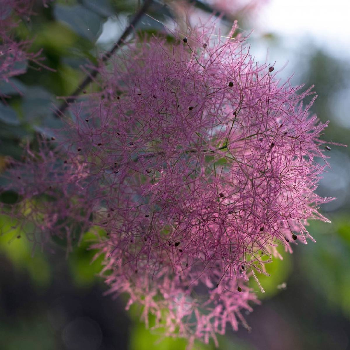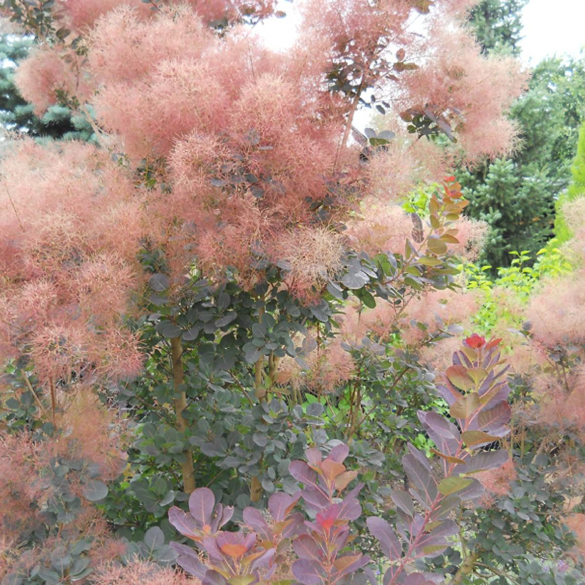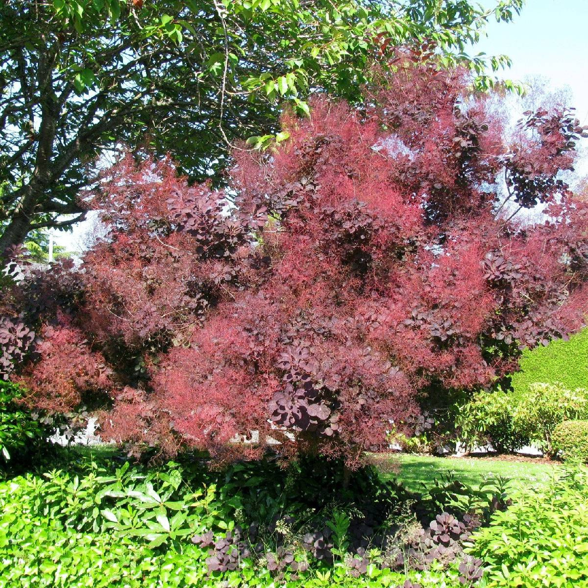 Odmiana perukowca o zwartym i kompaktowym pokroju. Krzew osiąga wysokość 3m wysokości. Liście są purpurowe, jajowate, o długości 3-8cm. Jesienią wybarwiają się na urocze i ciepłe kolory pomarańczy i czerwieni. Największą ozdobą perukowca są jego początkowe kwiatostany, a potem owocostany. Kwitnienie perukowców odbywa się od końca maja aż do czerwca. Drobne kwiaty perukowca zebrane są w całkiem spore szczytowe wiechy, które z czasem rozwijają się w okazałe, puszyste, purpurowe owocostany, które swoim wyglądem przypominają peruki. Od właśnie ich wyglądu pochodzi nazwa rodzajowa.