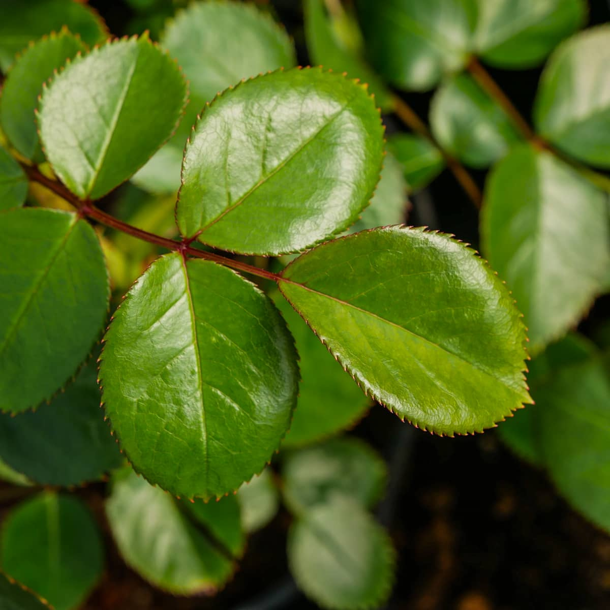 Liście lekko błyszczące, soczyście zielone, młode mają widoczne czerwone