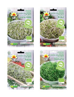 Zestaw Bio nasiona na kiełki Rzeżucha Rukola Lucerna Brokuł 60g Toraf