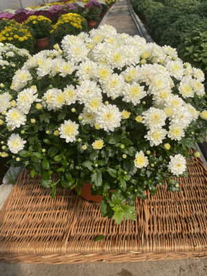Chryzantema Lumia Blanc biała sadzonki w doniczce P11
